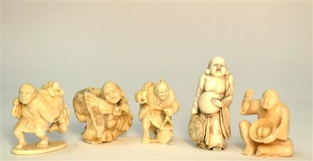Lotto di cinque netsuke in avorio Giappone periodo Meiji.