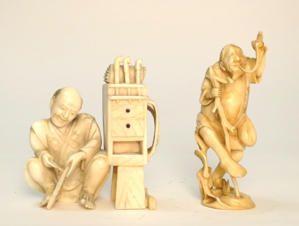 Due okimono in avorio, un artigiano e un sennin Giappone periodo Meiji cm.7