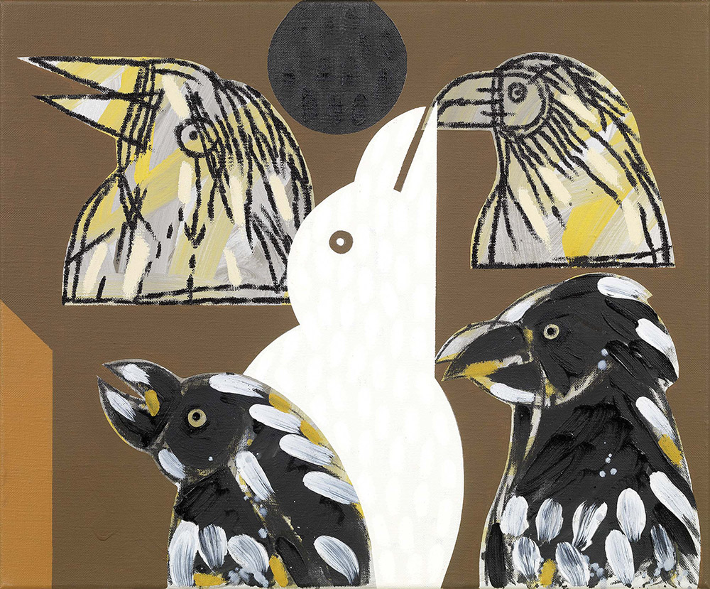 Concetto Pozzati, Vò Vecchio (Pd) 1935, A muso duro, 1998, Olio su tela, cm. 50x60, Firma e data al verso sulla tela: Pozzati '98; titolo sul telaio: "A muso duro": etichetta Galleria Astuni, Fano, con n. A 652., Foto autenticata dall'artista in data 10/07/99.,