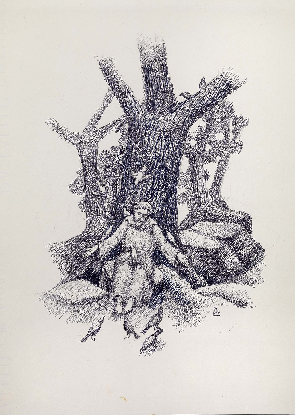 Gerardo Dottori, Perugia 1888 - 1977, Lotto di trentacinque disegni, Tecniche, misure e soggetti vari; alcuni siglati in basso a destra: D., Disegni realizzati da Gerardo Dottori per le illustrazioni di alcune opere di Mario Solinas., Bibliografia: Mario Solinas, Le vie del silenzio. Le Carceri, Donnini Editore, Perugia, 1950, ;, Mario Solinas, Le vie del silenzio. Rivotorto, Tipografia Perugina, Perugia, 1952, ;, Mario Solinas, Le vie del Silenzio. Greccio, Edizioni Gammasol, Perugia, 1956, ;, Mario Solinas, Le vie del silenzio. La Verna, Editore Grafica, Perugia, 1959, ;, Mario Solinas, Dal Colle del Paradiso all'Eremo di Subasio, Assisi, 1978, .,
