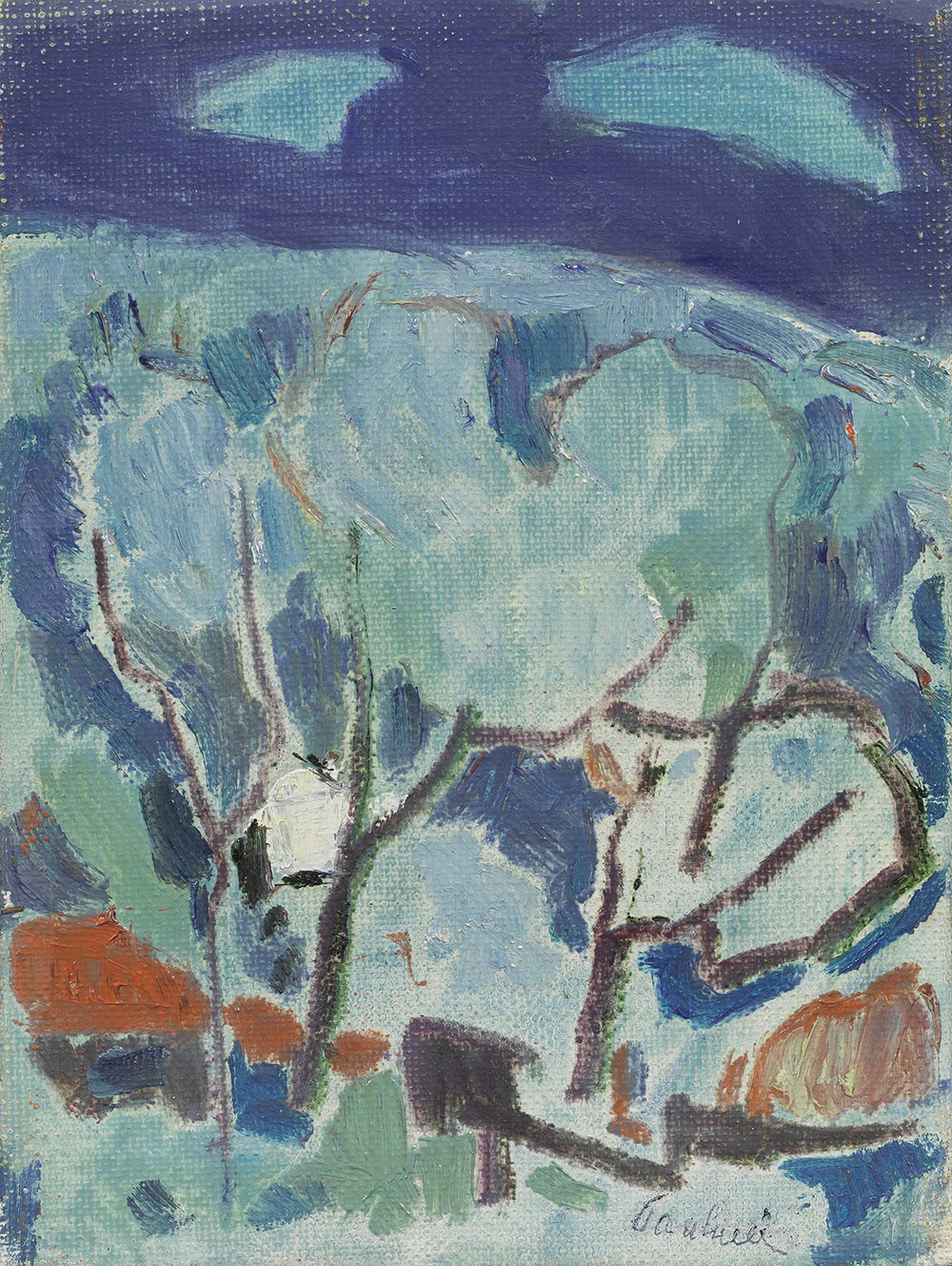 Enrico Paulucci, Genova 1901 - Torino 1999, Uliveto, Olio su tela, cm. 20x15, Firma in basso a destra: Paulucci., Bibliografia: Enrico Paulucci. Plein Air, Edizioni Santacroce, Firenze, 1982, p. 68.,