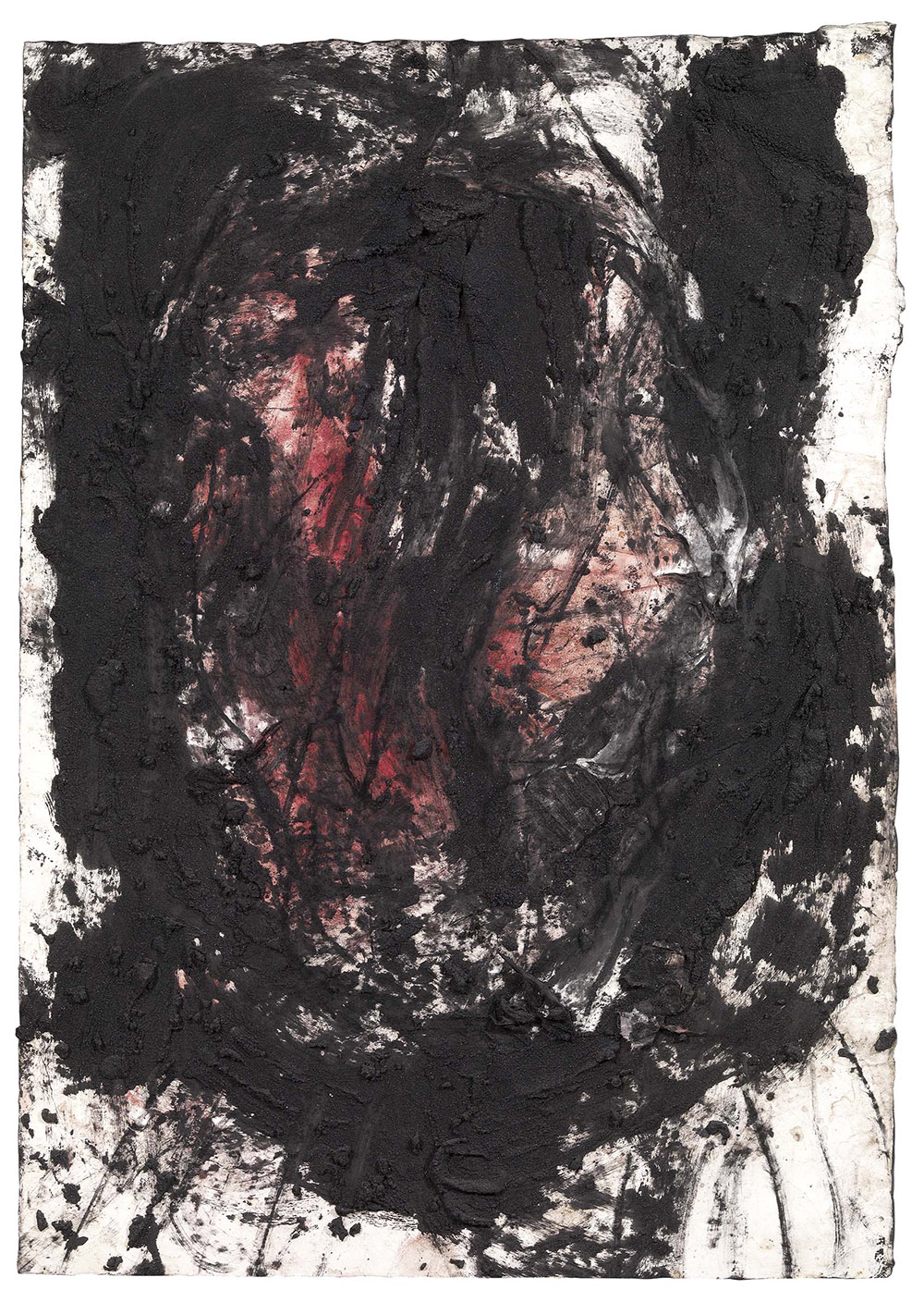 Giuseppe Spagnulo, Grottaglie (Ta) 1936, Dai volti, 2008, Tecnica mista su carta, cm. 106x74, Titolo, firma e data al verso: "Dai volti"$G. Spagnulo 08.,
