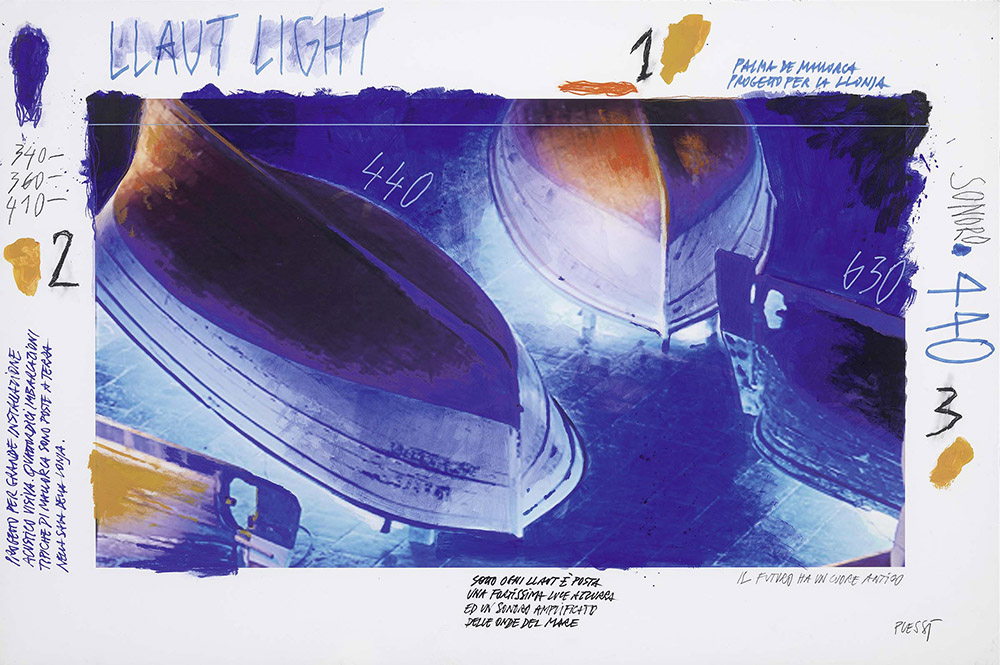 Fabrizio Plessi, Reggio Emilia 1940, Llaut light, 2011, Tecnica mista su carta applicata su tavola, in teca di plexiglass, cm. 100x150, Firma in basso a destra: Plessi., Foto autenticata dall'artista, Venezia, 8 gennaio 2012, con n. 0009.,