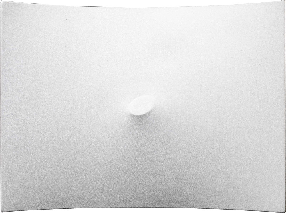 Turi Simeti, Alcamo (Tp) 1929, Un ovale bianco, 2002, Acrilico su tela sagomata, cm. 44x59, Foto autenticata dall'artista etichetta Archivio Turi Simeti, Milano, con n. 2002-B0431.,