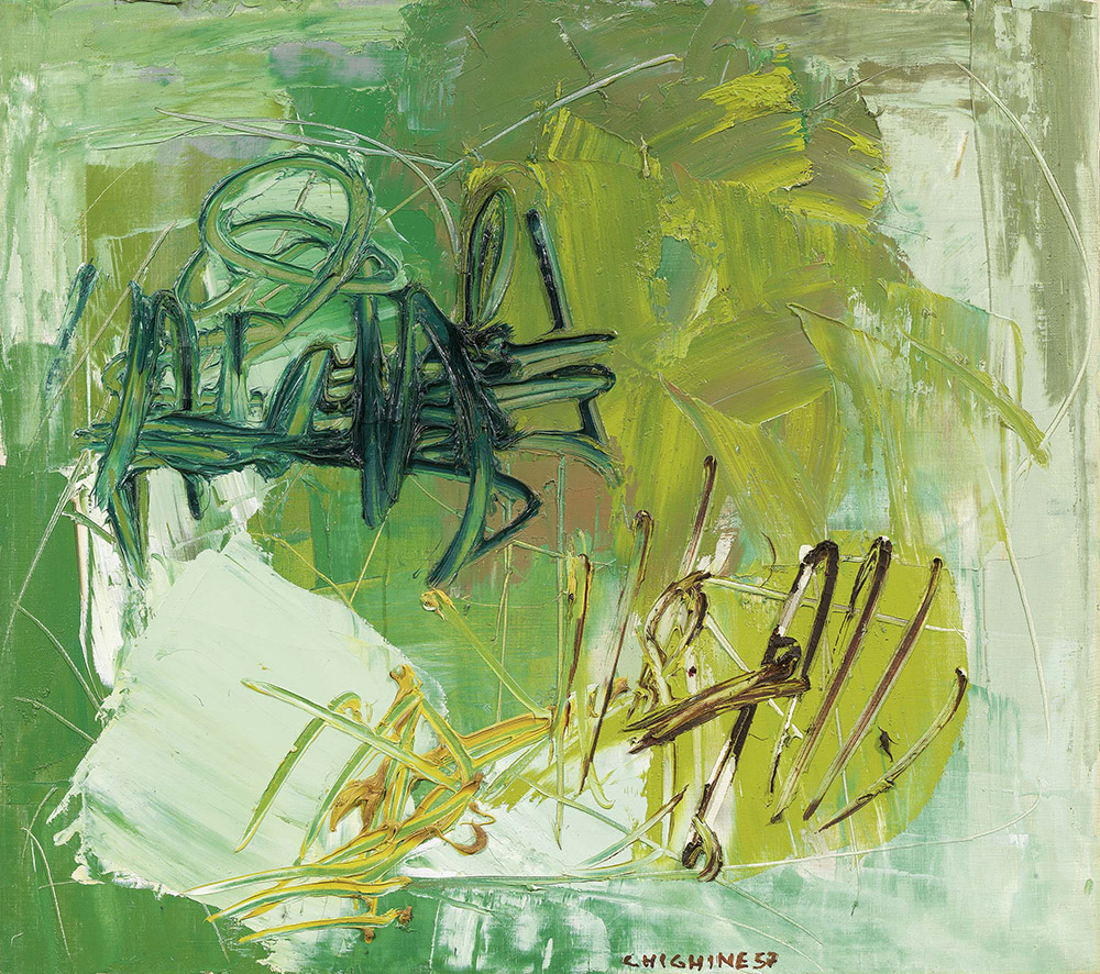 Alfredo Chighine, Milano 1914 - Pisa 1974, Il lago, 1957, Olio su tela, cm....