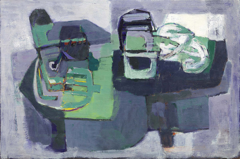 Renato Birolli, Verona 1905 - Milano 1959, Natura morta marina - Polipi e fiocine, 1953, Olio su tela, cm. 74,8x113, Titolo, data e firma al verso sulla tela: Natura morta marina / - Polipi e Fiocine - 1953 / Renato Birolli; sul telaio: etichetta VI Mostra Nazionale di Pittura Premio "Golfo della Spezia": etichetta Galerie Ferdinand Möller, Köln., Esposizioni: Acht italienische Maler, mostra itinerante in Germania, 1953;, Renato Birolli. Taccuino delle Marche, Milano, Galleria Il Milione, ottobre - novembre 1974;, Renato Birolli. Dipinti delle Marche (1953-54), Bologna, Galleria San Luca, novembre 1974;, Renato Birolli. Necropoli e paesaggio adriatico, Repubblica di San Marino, Galleria d'Arte Moderna e Contemporanea, 13 marzo - 30 giugno 2010, cat. pp. 88, 89, illustrato a colori., Bibliografia: Zeno Birolli, Renato Birolli, Feltrinelli Editore, Milano, 1978, n. 1954.32 (621) (opera datata 1954).,