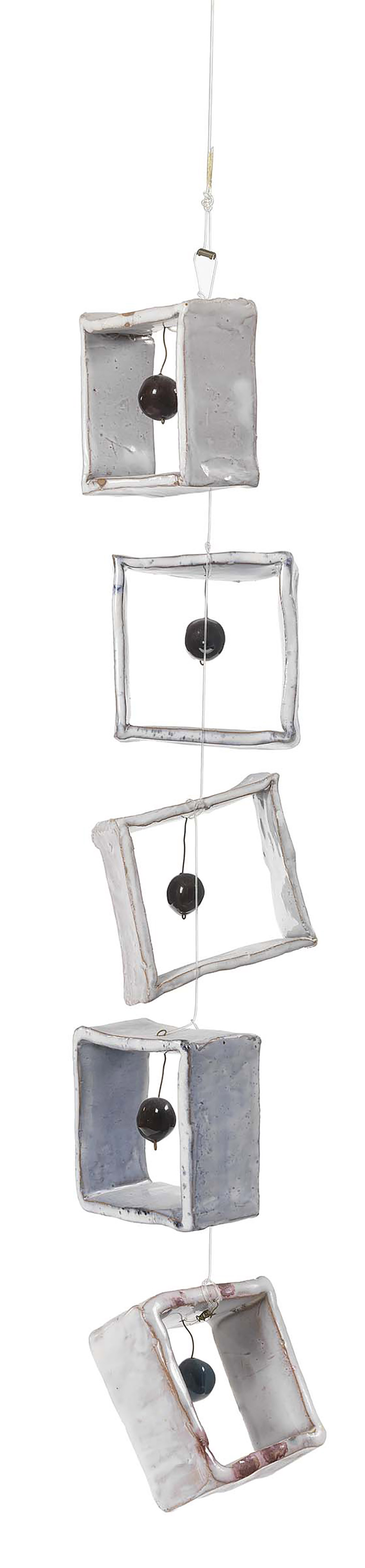 Fausto Melotti, Rovereto (Tn) 1901 - Milano 1986, Cerchi, 1957 ca., Ceramica smaltata policroma, nylon e ottone, cm. 60x10x4,5, Certificato su foto Archivio Fausto Melotti., Esposizioni: Fausto Melotti. Disegni e ceramiche. Opere dal 1952 al 1985, Galleria La Scaletta, San Polo di Reggio Emilia, 15 giugno - 11 ottobre 1998, cat. p. 68, illustrata;, Omaggio a Fausto Melotti, Roma, Il Segno, 11 febbraio - 15 marzo 2002, cat. n. 9, illustrata., Bibliografia: Antonella Commellato, Marta Melotti, Fausto Melotti. L'opera in ceramica, catalogo della mostra, Trento, 30 maggio / 14 settembre, Skira, Milano 2003, p. 332, n. 25 (CE 5).,