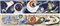 Enrico Prampolini, Modena 1894 - Roma 1956, Due Paesaggi cosmici, (1930), Tempera su cartoncino applicato su tavola, cm. 11,5x57 ognuno, , Firma in basso a destra di ognuno: Prampolini; al verso sulla tavola: E. Prampolini: etichetta Galleria Edieuropa / QUIarte contemporanea / Roma., , Certificato su foto di Massimo Prampolini, Roma, 10 luglio 2005 (in fotocopia)., , Esposizioni, Sogni di carta. Dipinti, disegni e incisioni dei maestri del '900, Riccione, Galleria d'arte moderna e contemporanea Villa Franceschi, 25 giugno - 11 settembre 2011, cat. p. 59, illustrate., ,