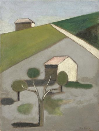 Filippo de Pisis, Ferrara 1896 - Milano 1956, Paesaggio metafisico, 1923, Olio su cartone applicato su tela, cm. 50x38, , Firma e data in basso a destra: De Pisis / 1923. Al verso sul telaio: timbro Salone Annunciata, Milano: etichetta Centro di Cultura di Palazzo Grassi / Venezia: etichetta Istituto di Cultura di Palazzo Grassi / Filippo de Pisis / 83 / Casa sulla collina / 1923: etichetta Morandi e il suo tempo / Galleria d'Arte Moderna, Bologna / 9 novembre 1985 - 10 febbraio 1986., , Storia, Collezione Antonio Mazzotta, Milano;, Collezione privata, , Esposizioni, 100 Opere di Filippo De Pisis, Prato, Galleria Farsetti, 1973, cat. n. 1, illustrato a colori;, La pittura metafisica, Venezia, Palazzo Grassi,1979, cat. n. 83, illustrato;, De Pisis, a cura di Giuliano Briganti, Venezia, Palazzo Grassi, 3 settembre - 20 novembre 1983, cat. p. 55, n. 13, illustrato;, Morandi e il suo tempo, a cura di Silvia Evangelisti e Marilena Pasquali, Bologna, Galleria Comunale d'Arte Moderna, 9 novembre 1985 - 10 febbraio 1986, cat. pp. 153, 267, n. 167, illustrato a colori;, De Pisis, Comacchio, Palazzo Bellini, 12 luglio - 22 settembre 1986, cat. n. 6, illustrato a colori;, L'arte del paesaggio, pittura in Italia dal divisionismo all'informale, Ravenna, Pinacoteca Comunale, 25 maggio - 22 settembre 1991, cat. p. 72, illustrato;, De Pisis, dalle avanguardie al "diario", Roma, Galleria Nazionale d'Arte Moderna, 6 febbraio - 6 aprile 1993, cat. pp. 58, 177, n. 10, illustrato a colori;, Filippo de Pisis, gli anni di Parigi, Bologna, Di Paolo Arte, ottobre 2010, cat. p. n.n., illustrato a colori., , Bibliografia, Guido Ballo, De Pisis, Edizioni Ilte, Torino, 1968, n. 40;, Giuliano Briganti, De Pisis. Catalogo generale, tomo primo, opere 1908-1938, con la collaborazione di D. De Angelis, Electa, Milano, 1991, p. 42, n. 1923 33;, Sandro Zanotto, Bona De Pisis, De Pisis. Passeggiate nel Lazio, Viviani Editore, Roma, 1993, pp. 17, 84;, Andrea Buzzoni, De Pisis, catalogo della mostra, Ferrara, Palazzo Massari, 29 settembre 1996 - 19 gennaio 1997, Edizioni Ferrara Arte, 1996, p. 10., ,