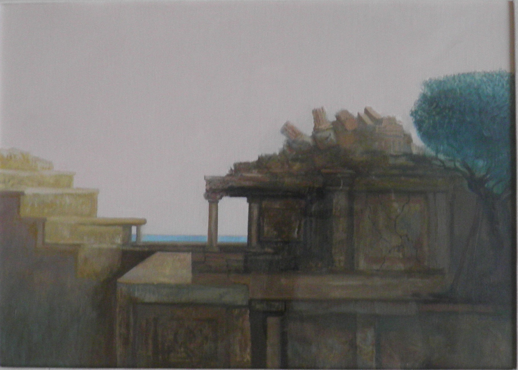 PICKING JOHN LANCASHIRE 1939 TWO TEMPLES, 1989 OLIO SU TELA cm 50 x 70 Firma...