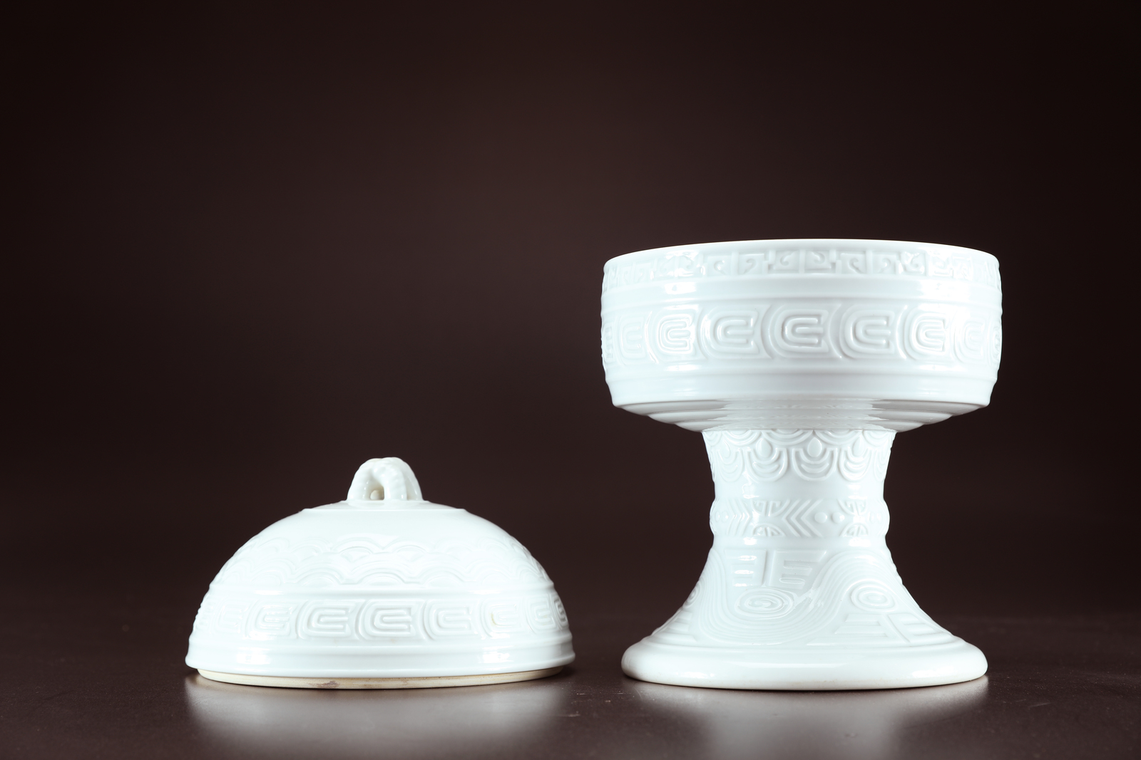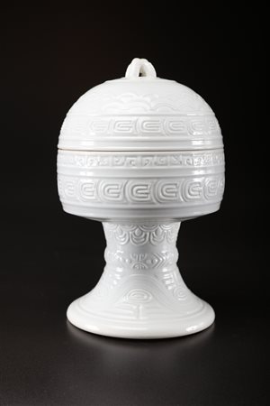 Lotto 51 | Arte Cinese Vaso imperiale "dou" con coperchio in porcellana bianco di Cina e...