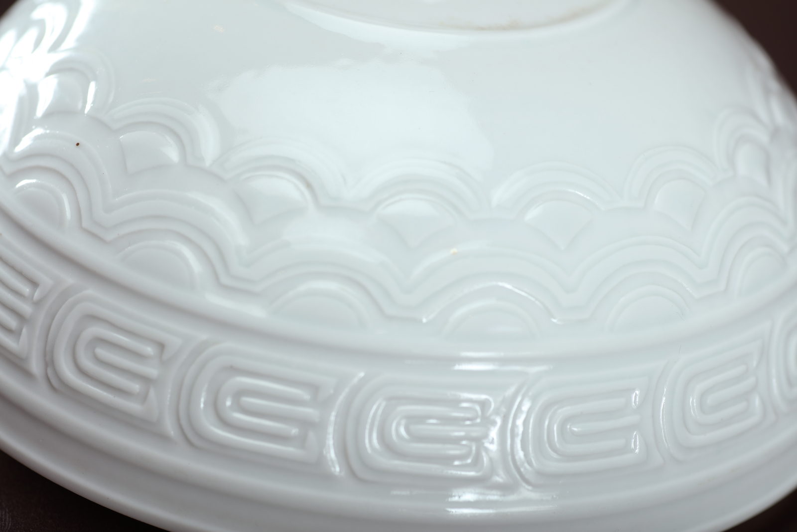 Arte Cinese Vaso imperiale "dou" con coperchio in porcellana bianco di Cina e con marchio a sigillo Qianlong sotto la base Cina, dinastia Qing. . Cm 26,00. Decorato con fasce orizzontali recanti motivi geometrici o astratti. Per un esemplare comparativo si veda quello venduto da Nagel nel maggio 2009; altri esemplari invetriati di blu sono stati venduti da Bonhams (asta 21940, lotto 176); un dou claire de lune è stato venduto da Christie's (asta 3406 lotto 206).
