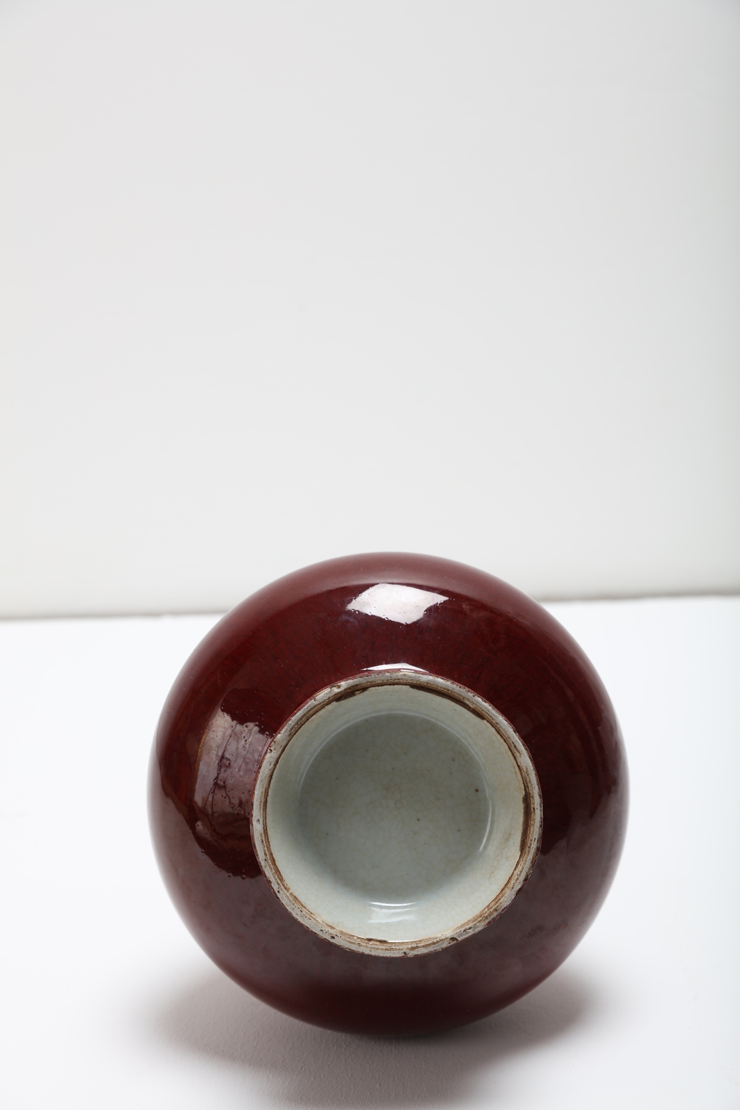 Arte Cinese Vaso in porcellana langyao invetriato di rosso con bordo...