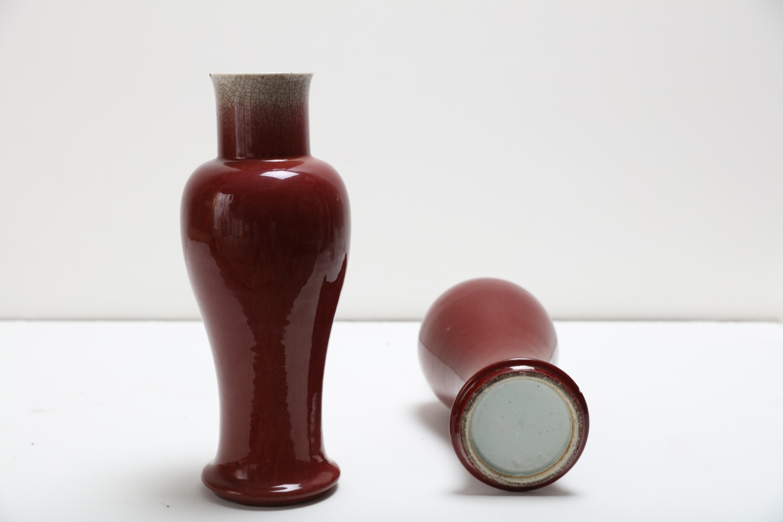 Arte Cinese A pair of langyao vases with a celadon craquelè color at the base and at the upper rim