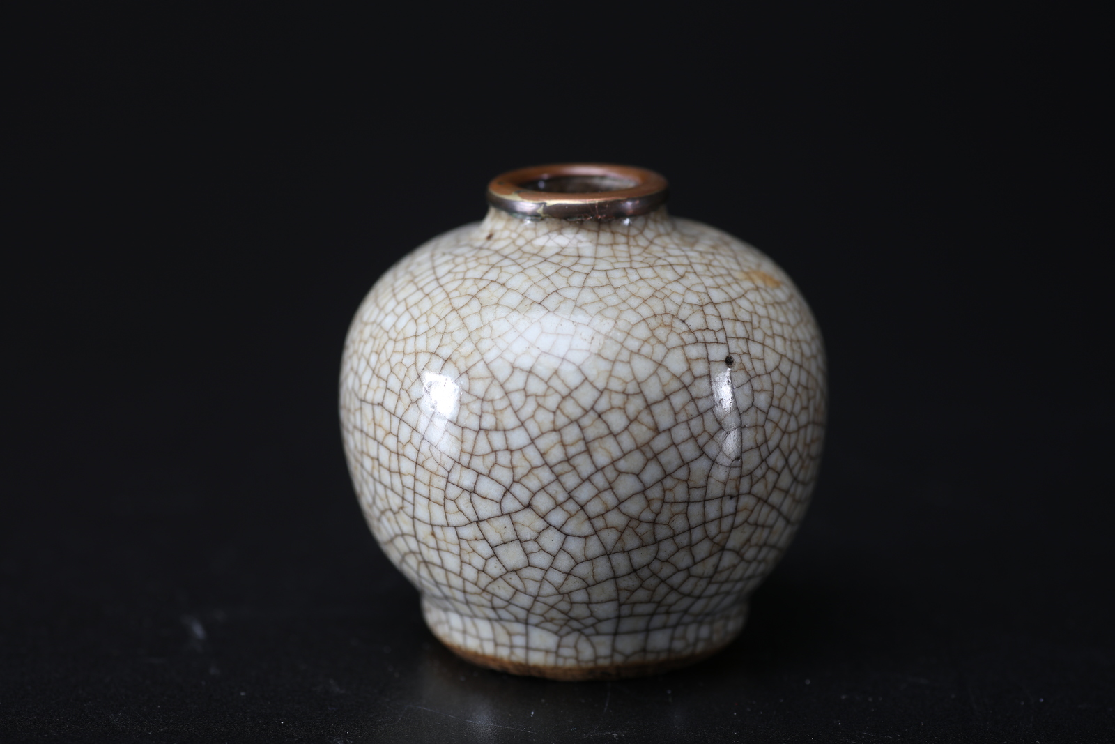 Arte Cinese A small guan glazed pottery vase with metal rim