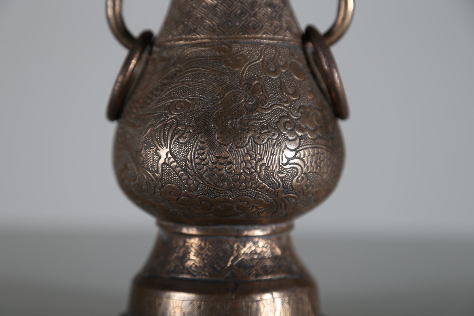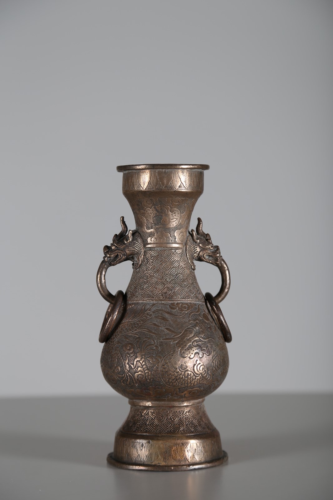 Arte Cinese A bronze vase engraved with dragons chasing the flaming pearl