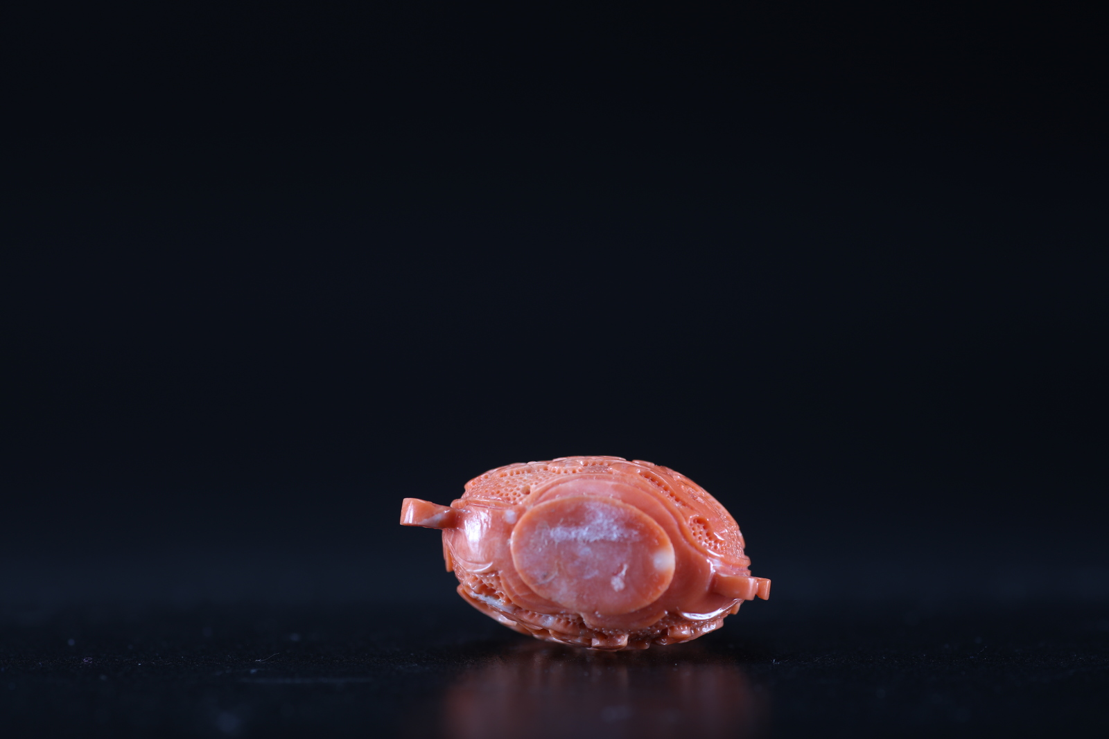 Arte Cinese Tabacchiera in corallo rosa intagliato con motivi floreali