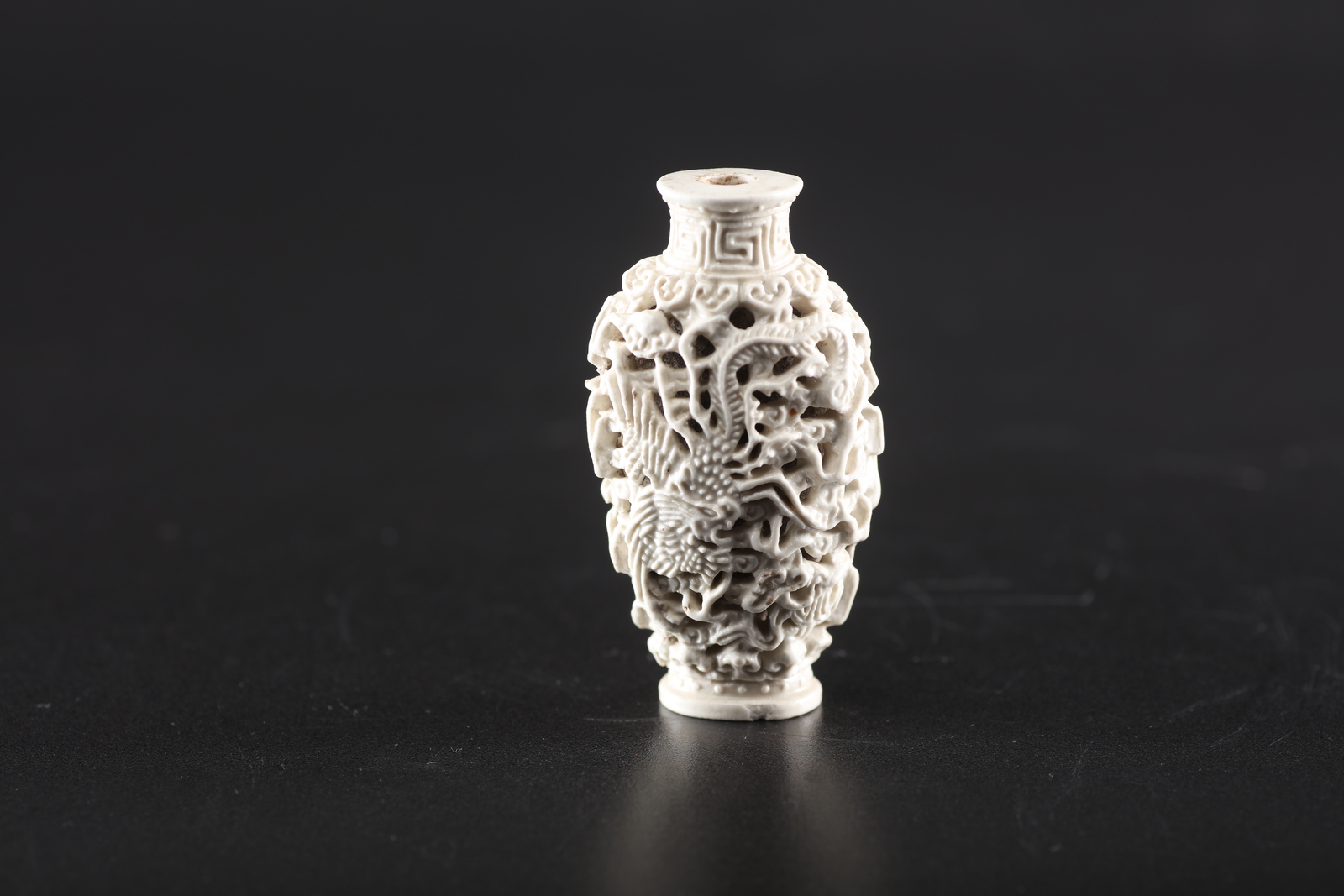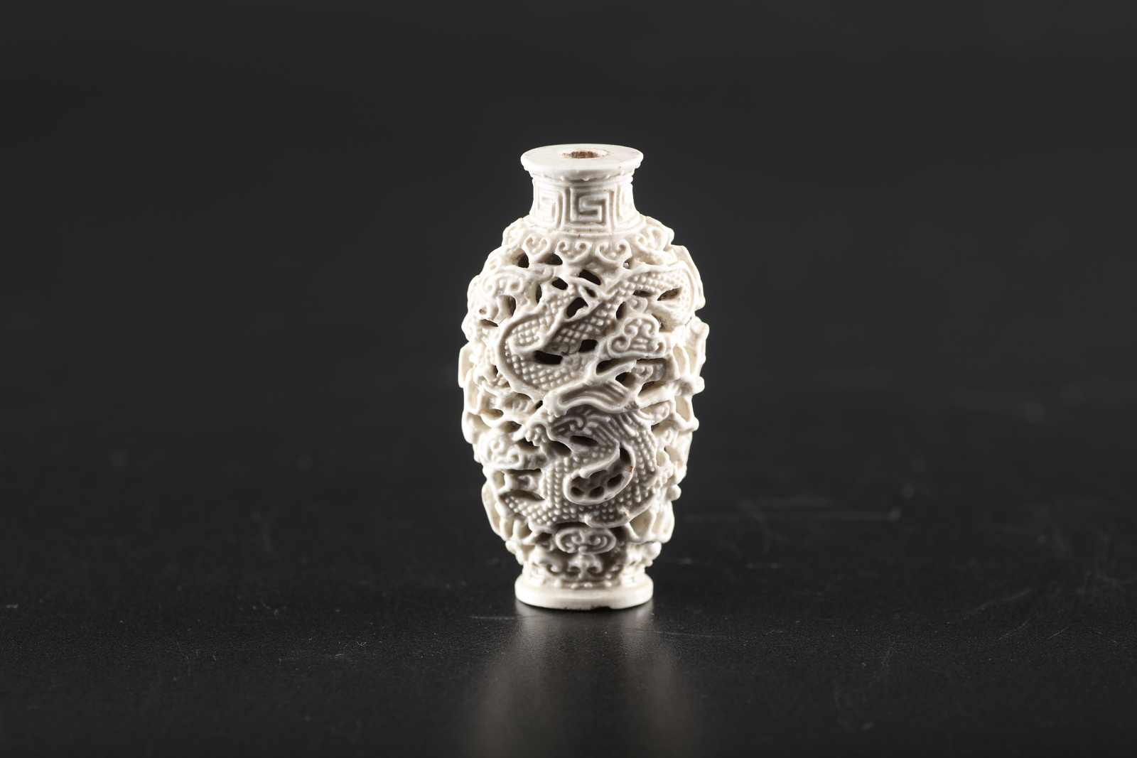 Arte Cinese A porcelain snuff bottle with openwork decoration of dragons and clouds