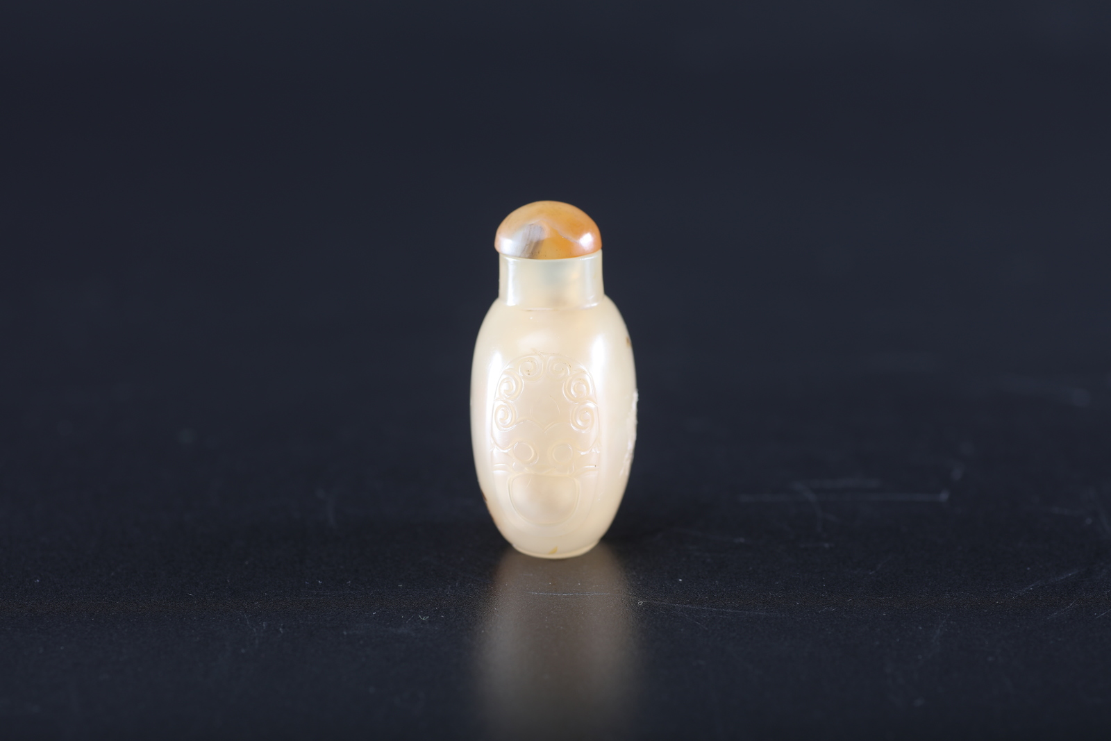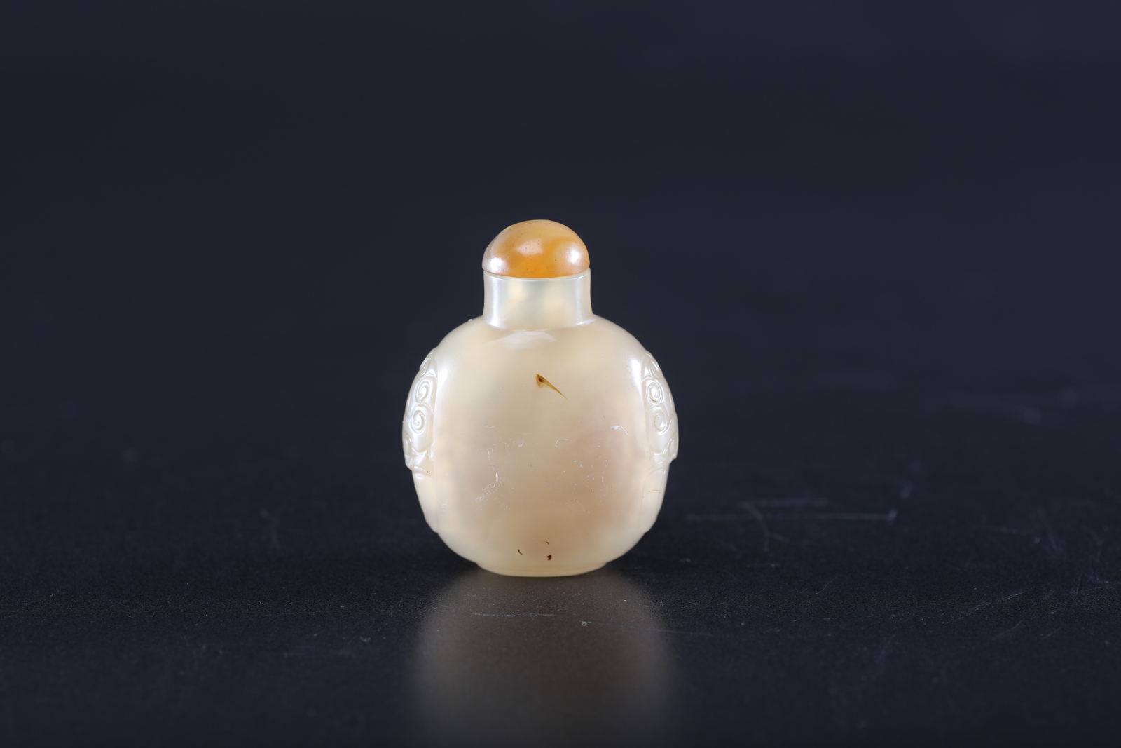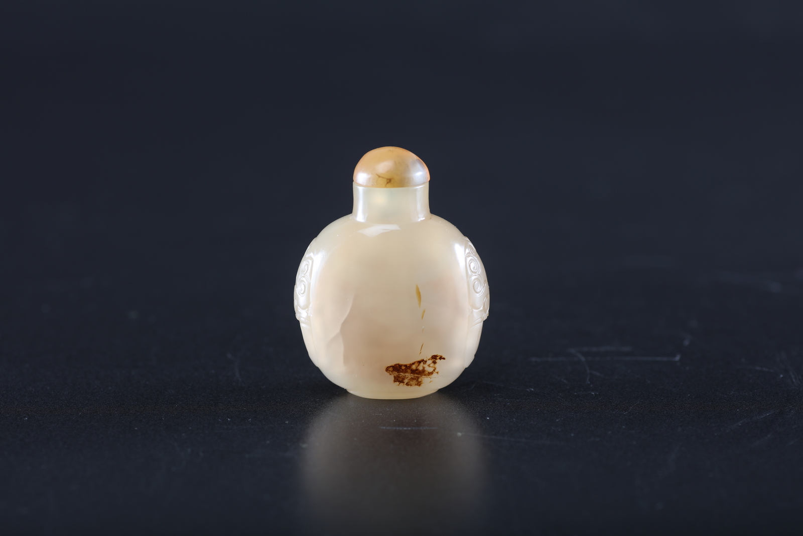 Arte Cinese An agate snuff bottle decotared with archaic motifs at the handles