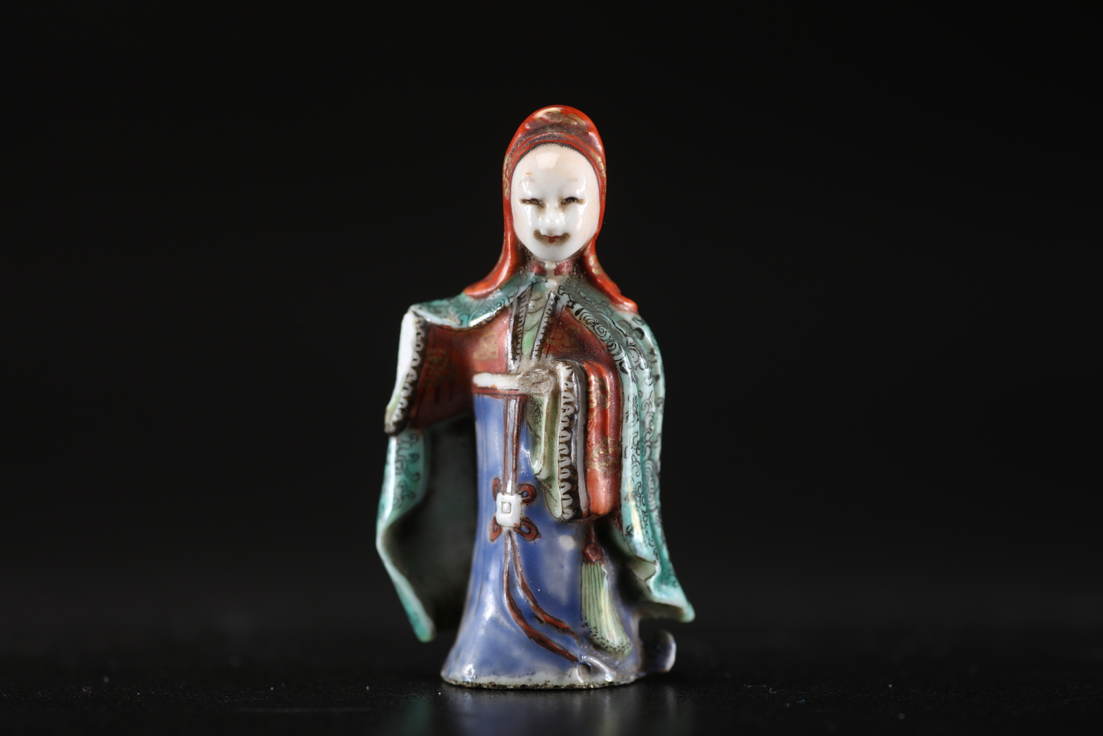 Arte Cinese Piccolo personaggio in porcellana policroma Cina, dinastia Qing,...