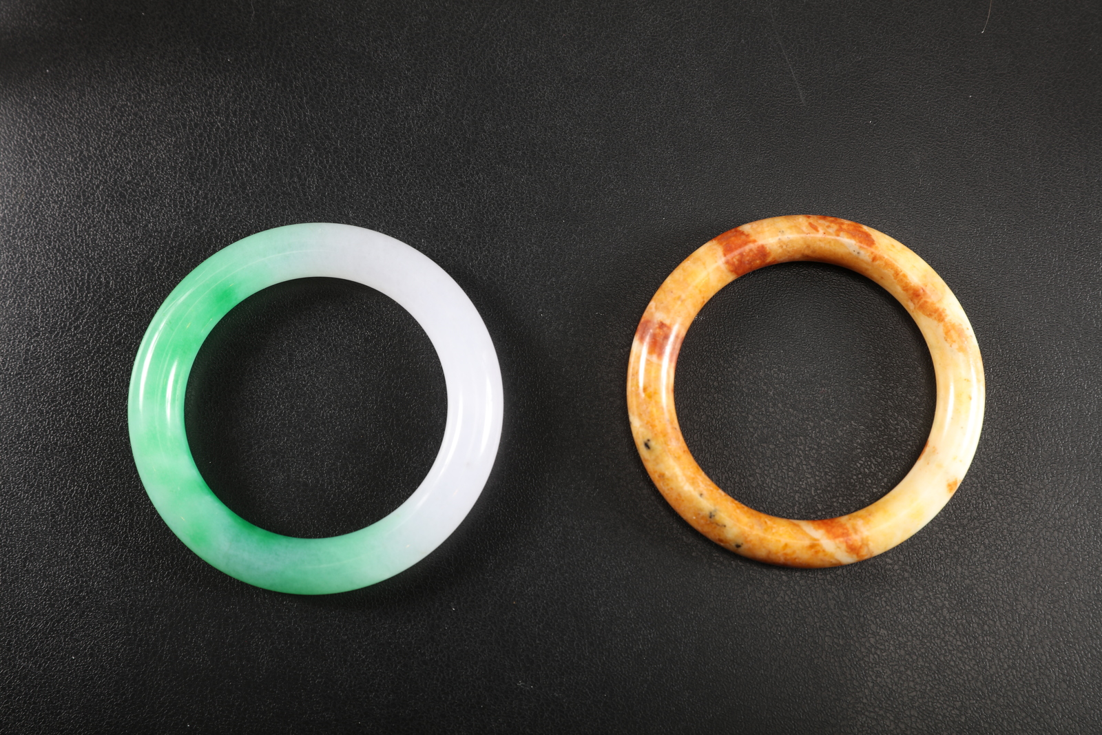 Arte Cinese Due bracciali: uno in giada ed uno in giadeite Cina, XX secolo ....