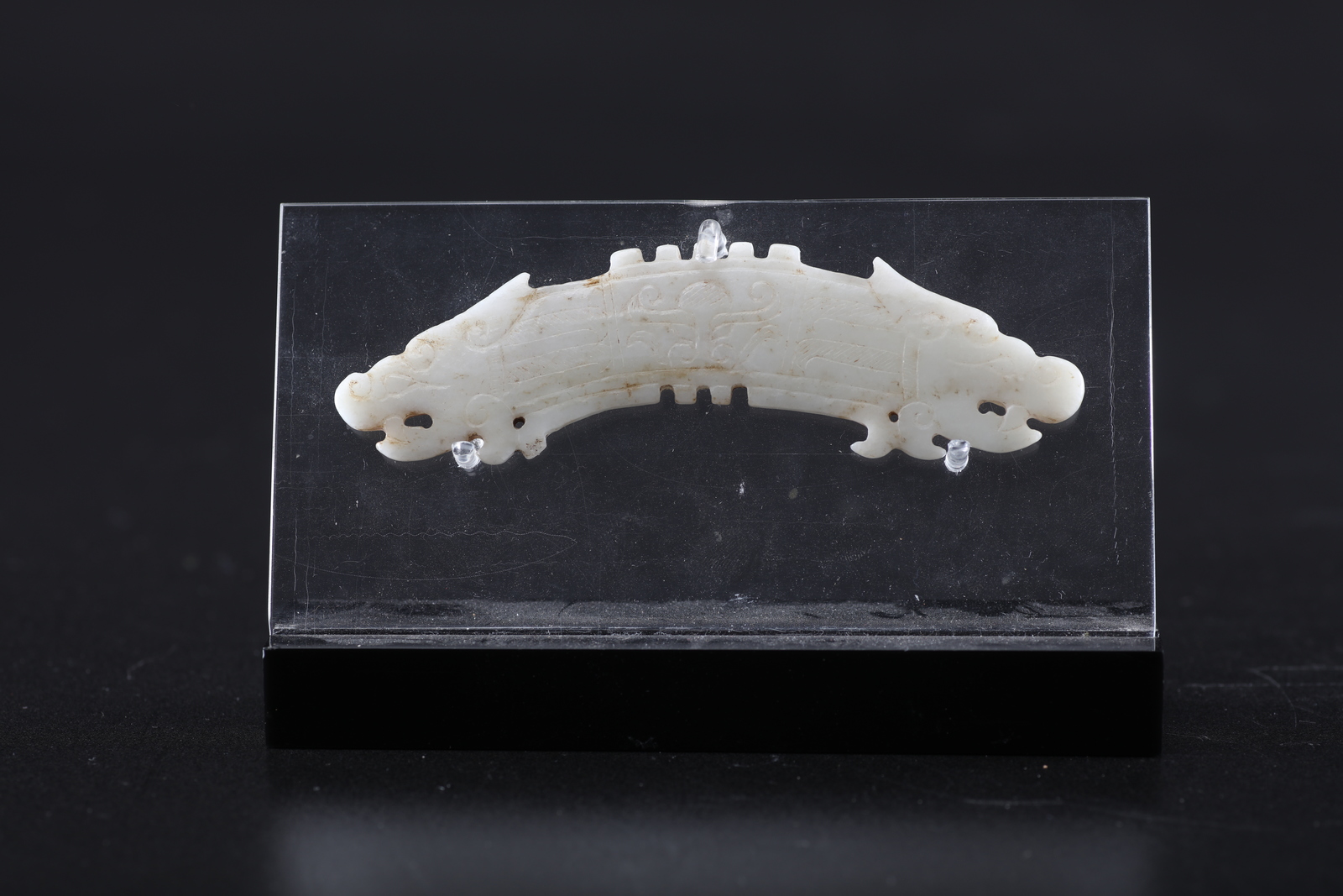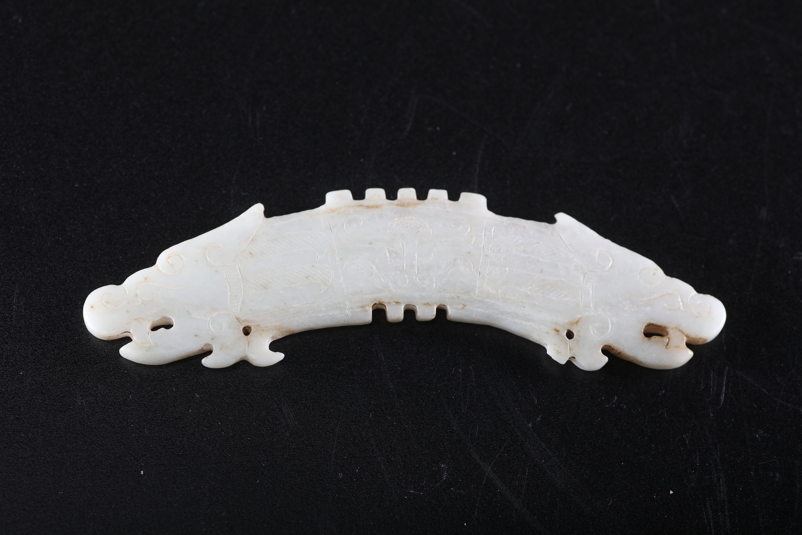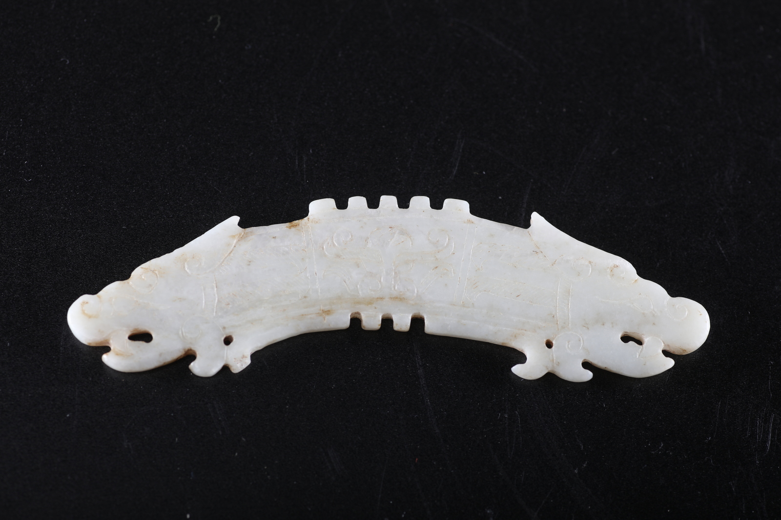 Arte Cinese A white jade huang in the shape of a mythological animal and incised with archaic motifs