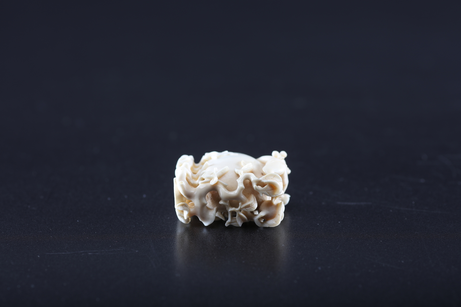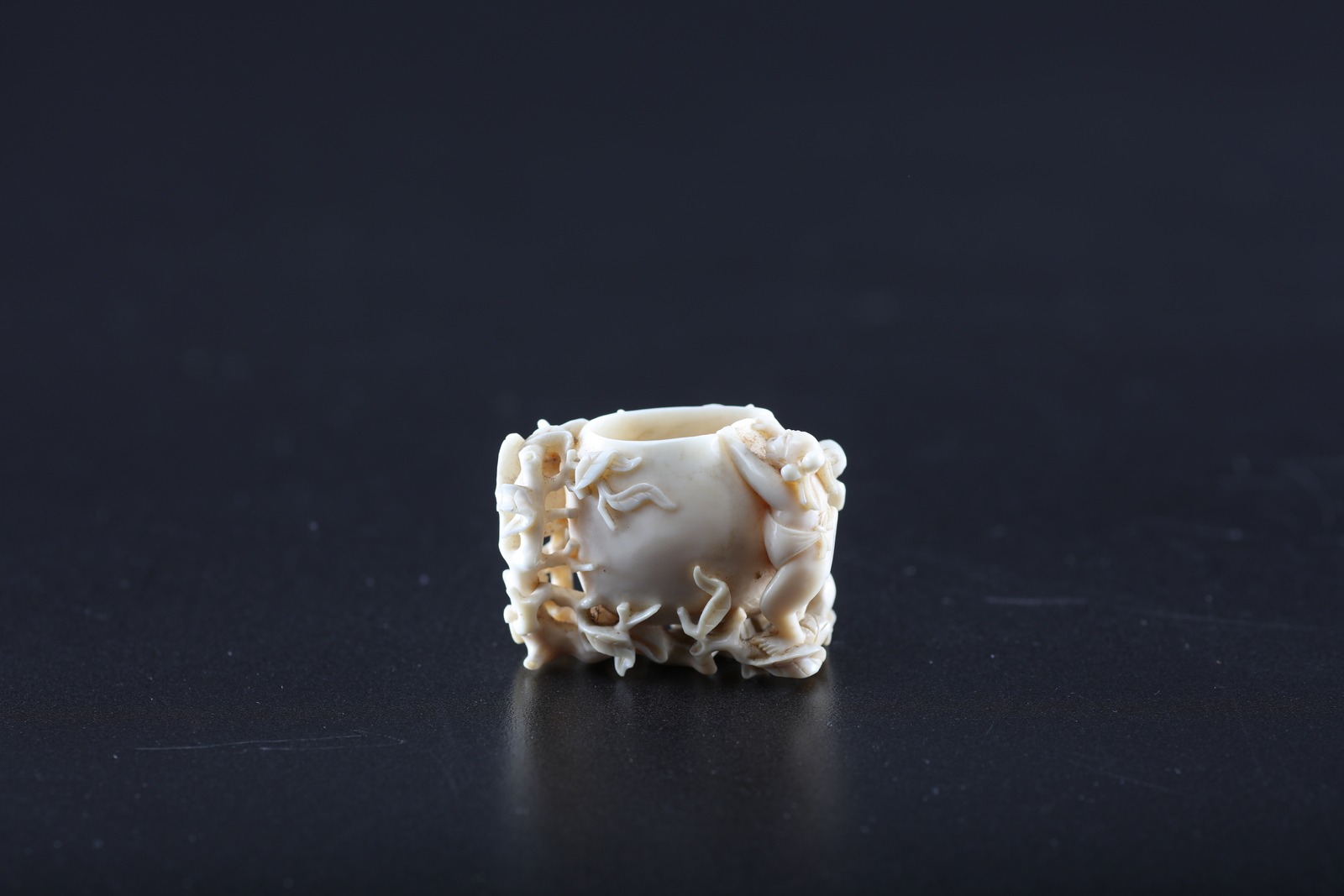 Arte Cinese Vasetto in avorio intagliato con delicati motivi fitoformi e uomo...
