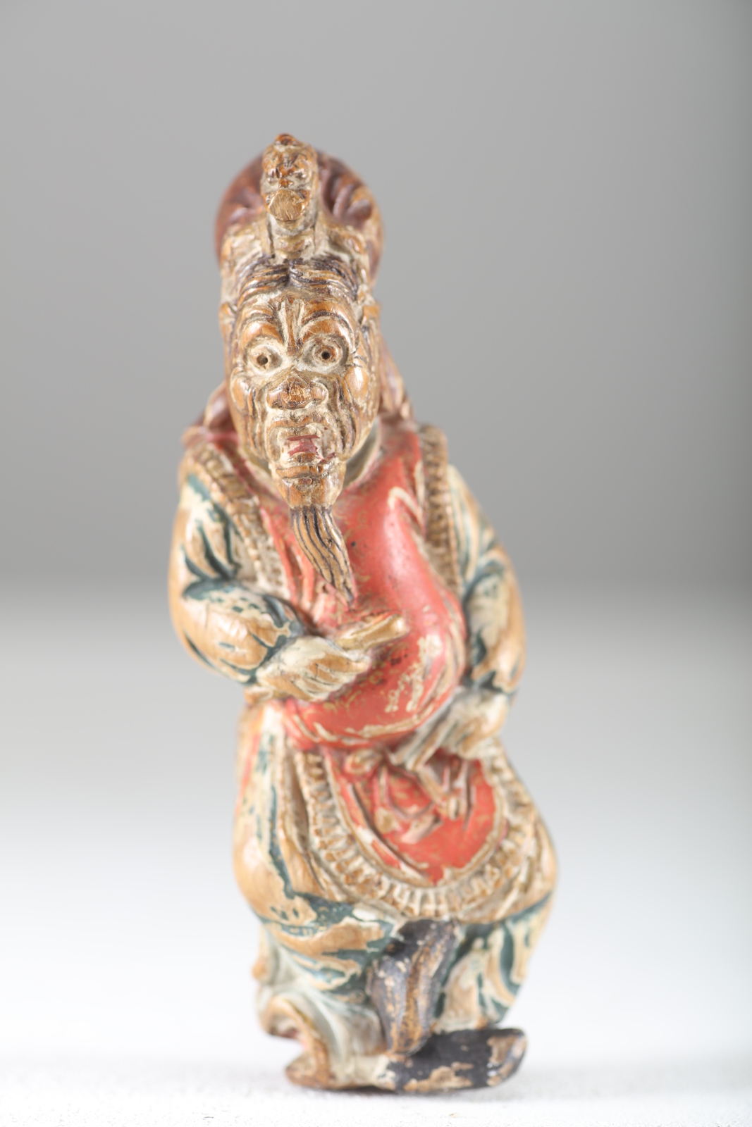 Arte Giapponese A wooden polychrome netsuke depicting a Gigaku theatre dancer