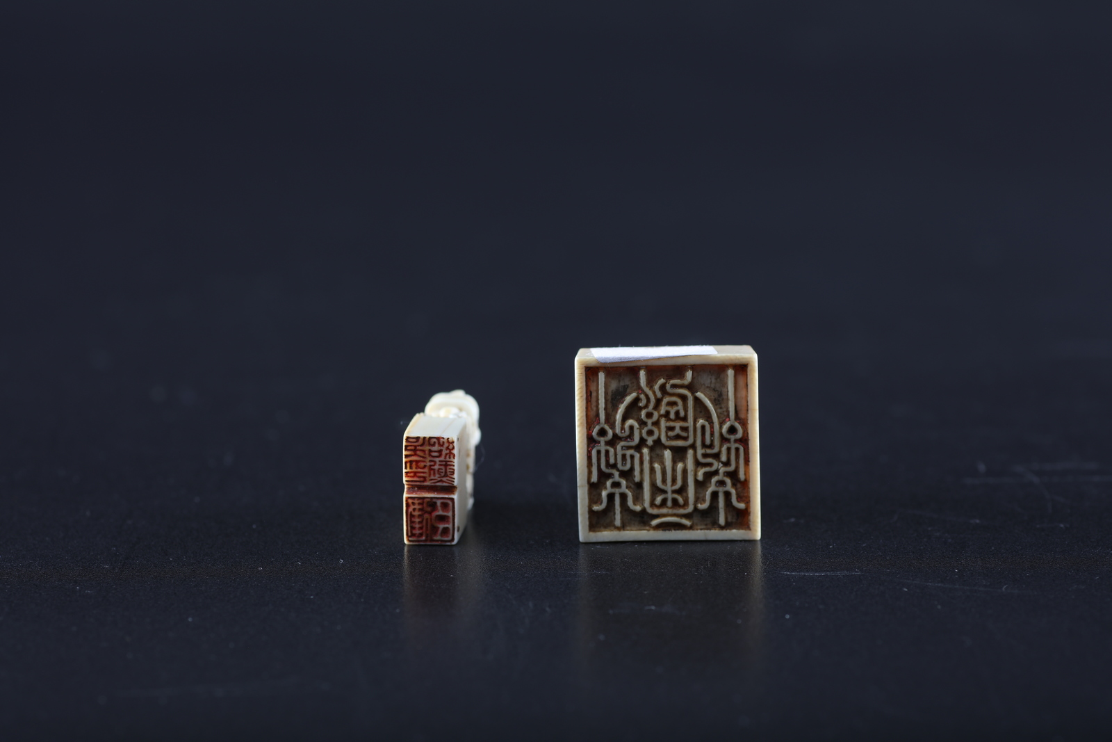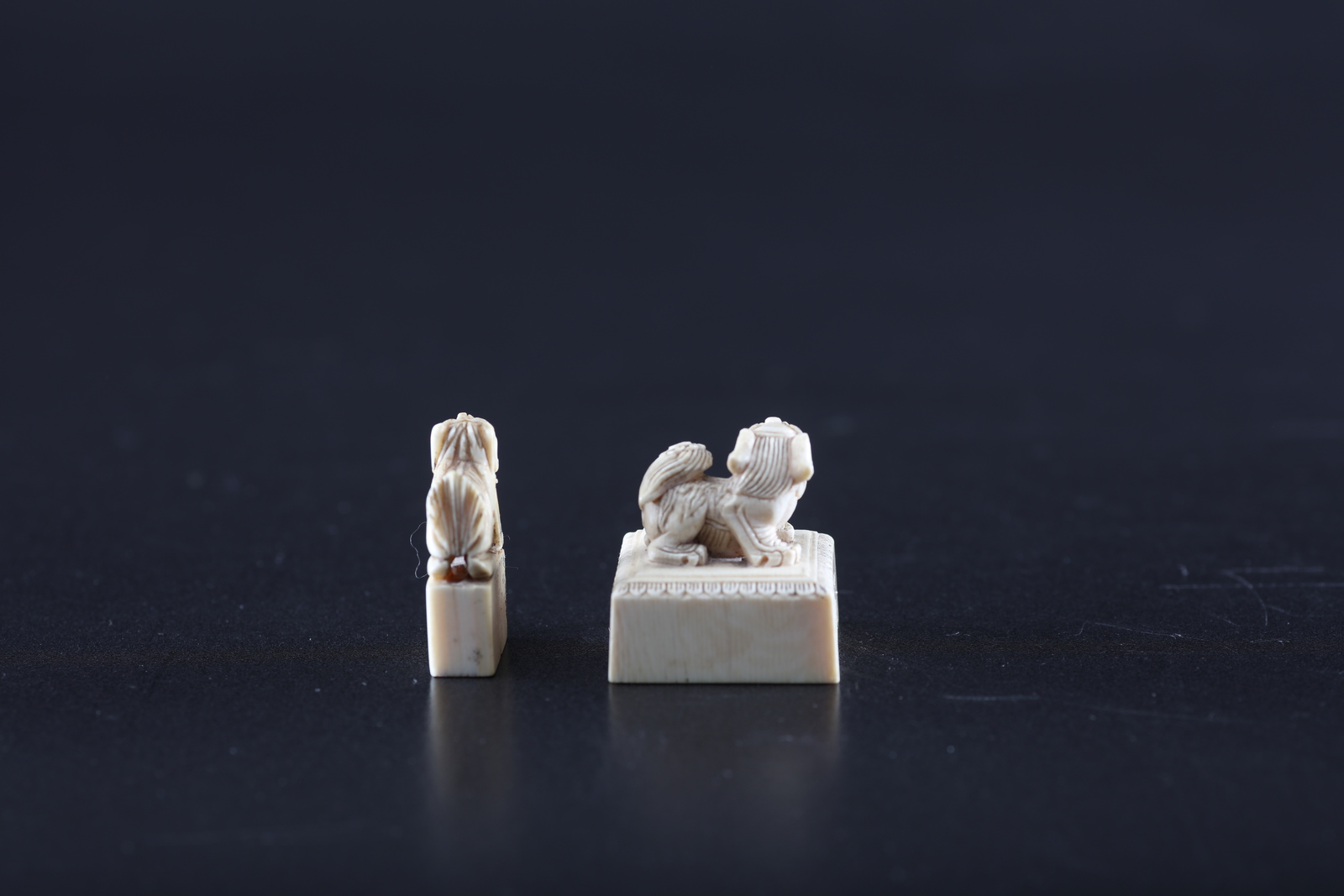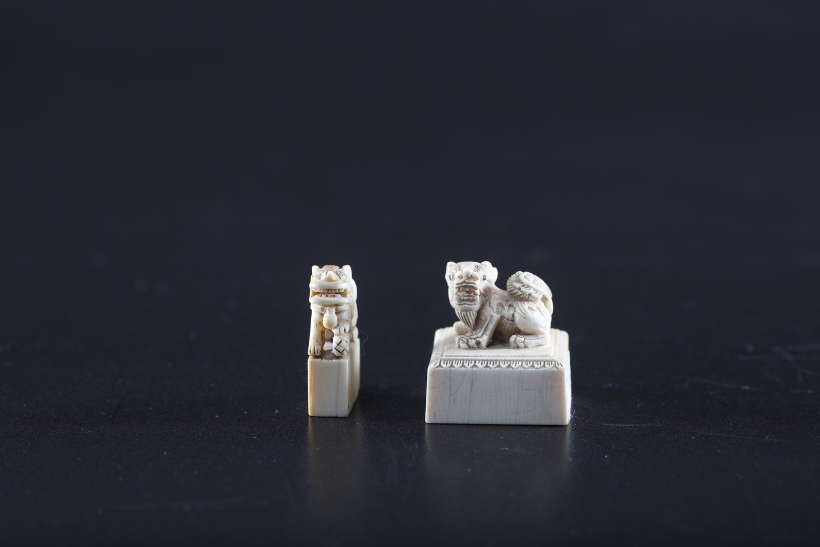 Arte Cinese Due sigilli in avorio con impugnatura a forma di cane di pho
