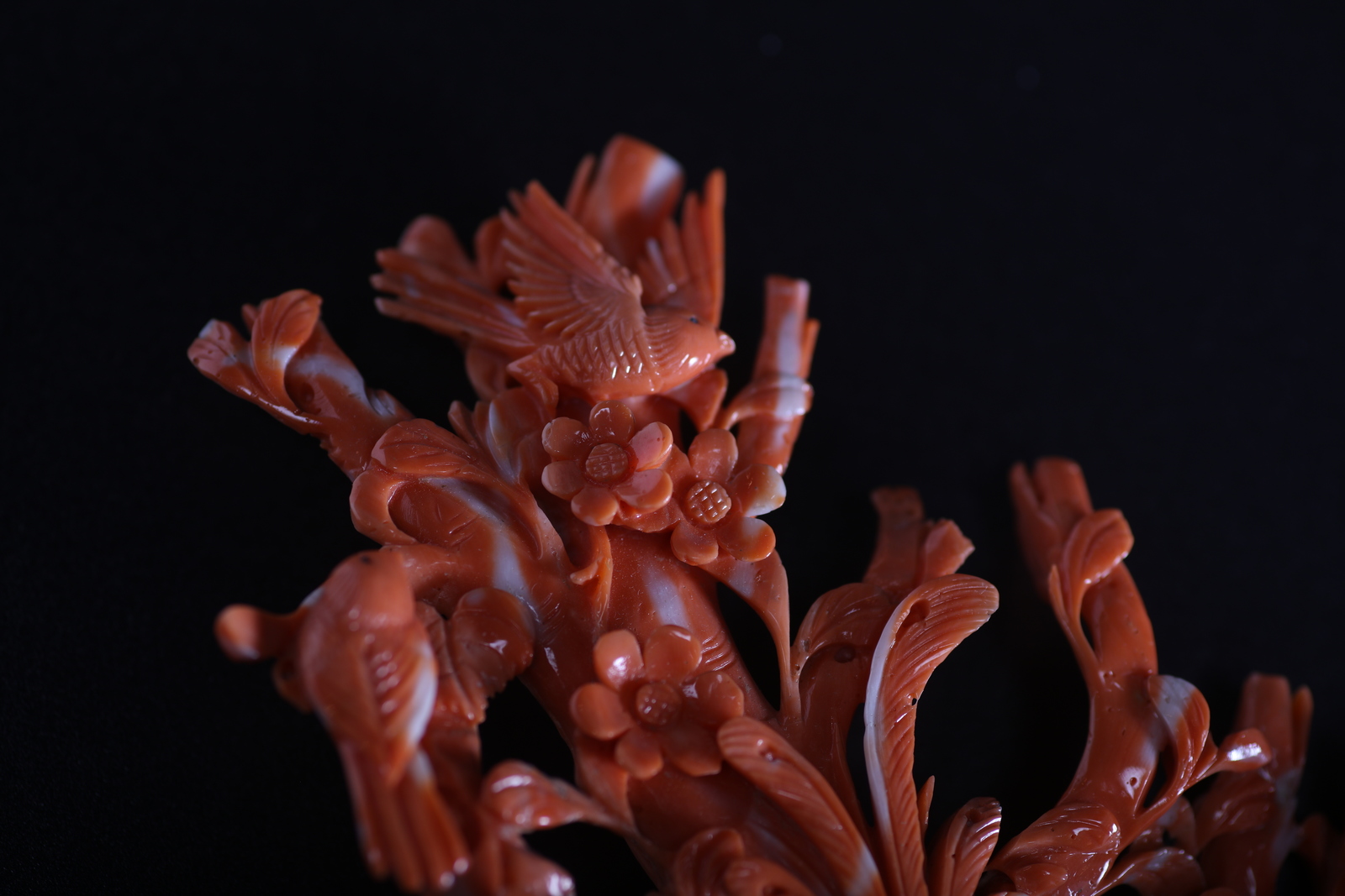 Arte Cinese Corallo con fenici Cina, XX secolo. . Cm 22,70 x 12,40. Corallo a...