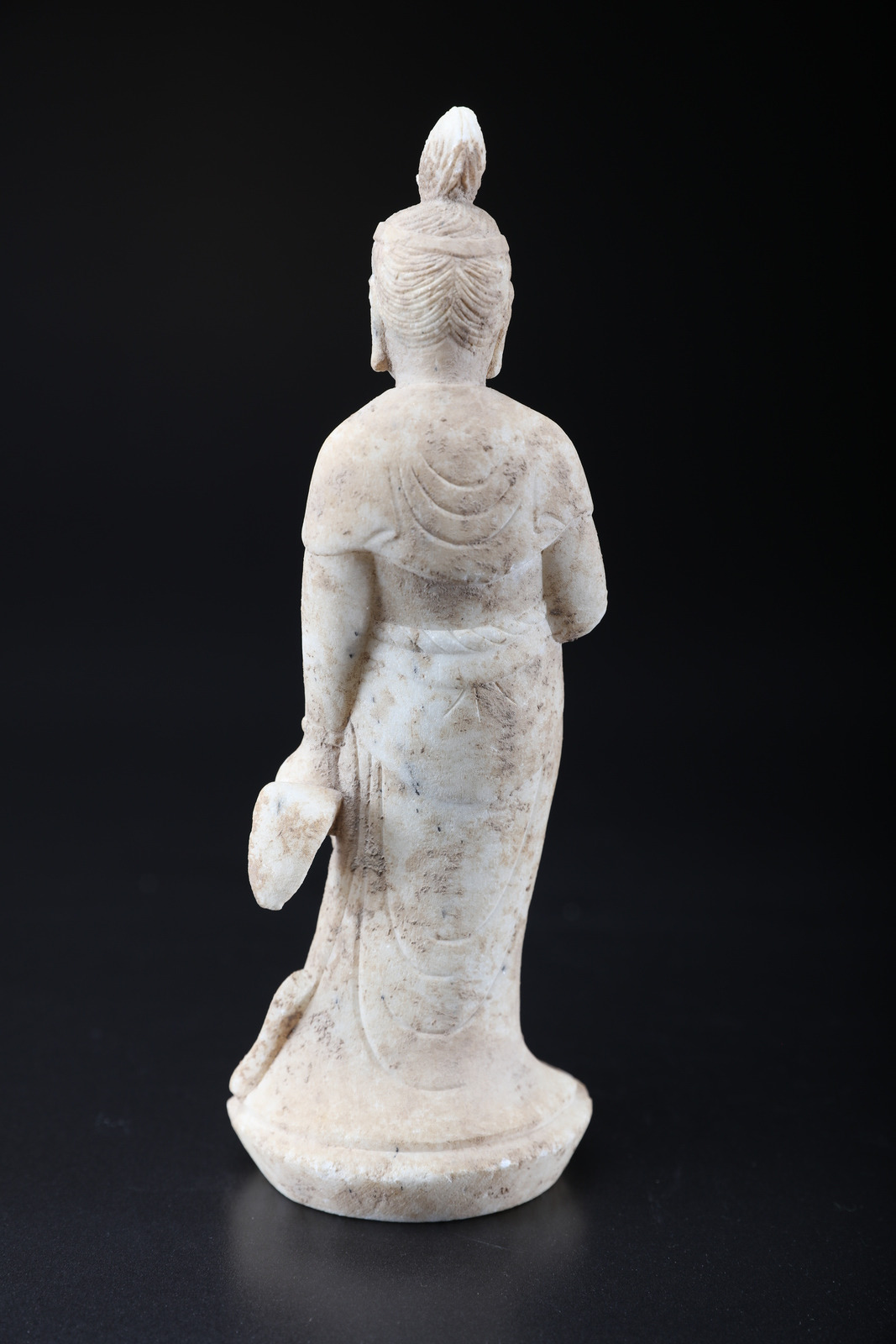 Arte Cinese Statua in marmo bianco raffigurante una donna nel classico stile Tang