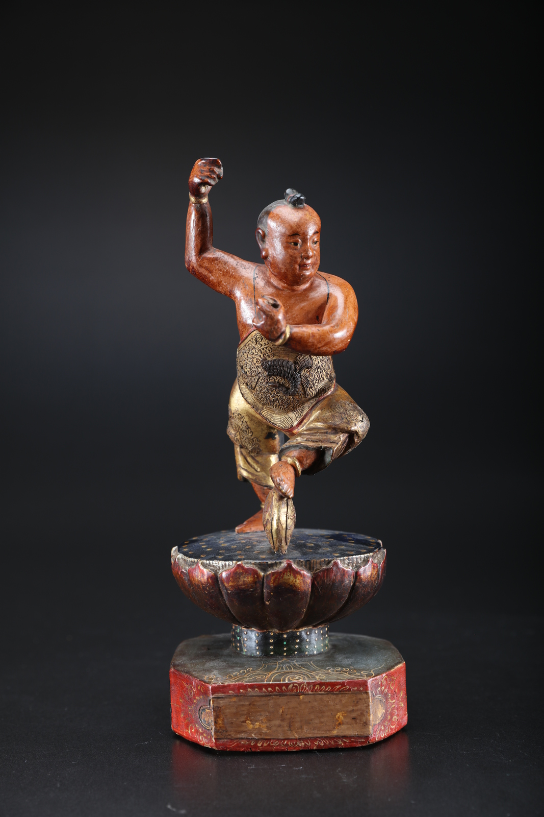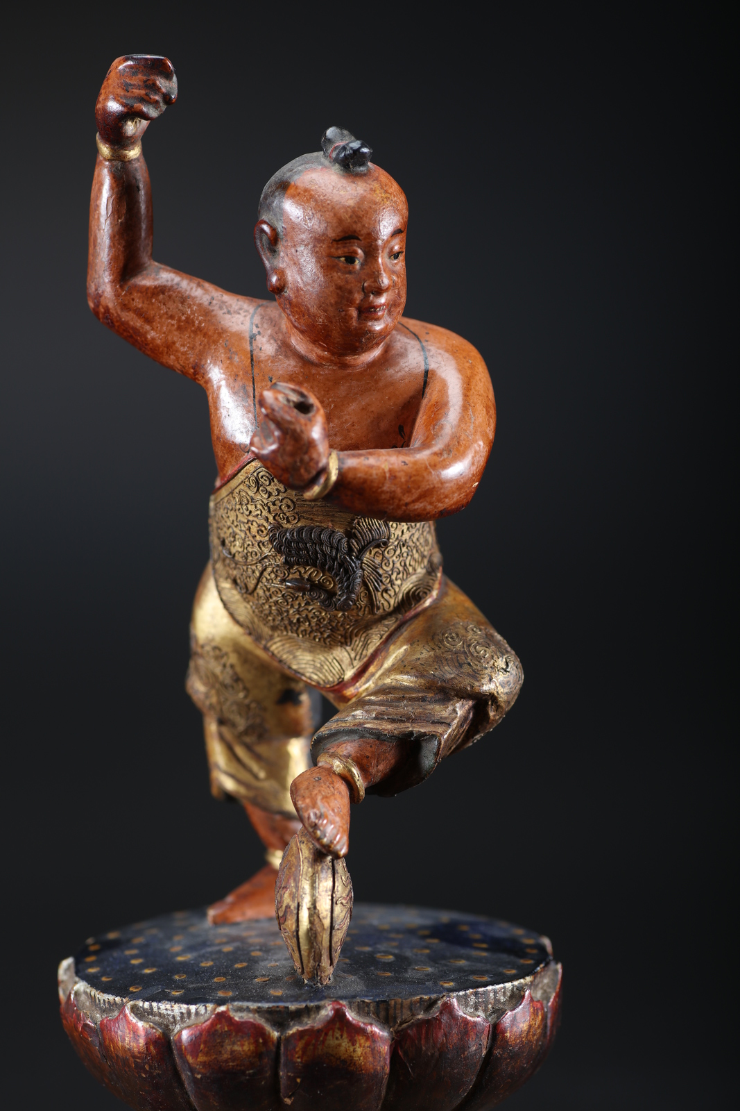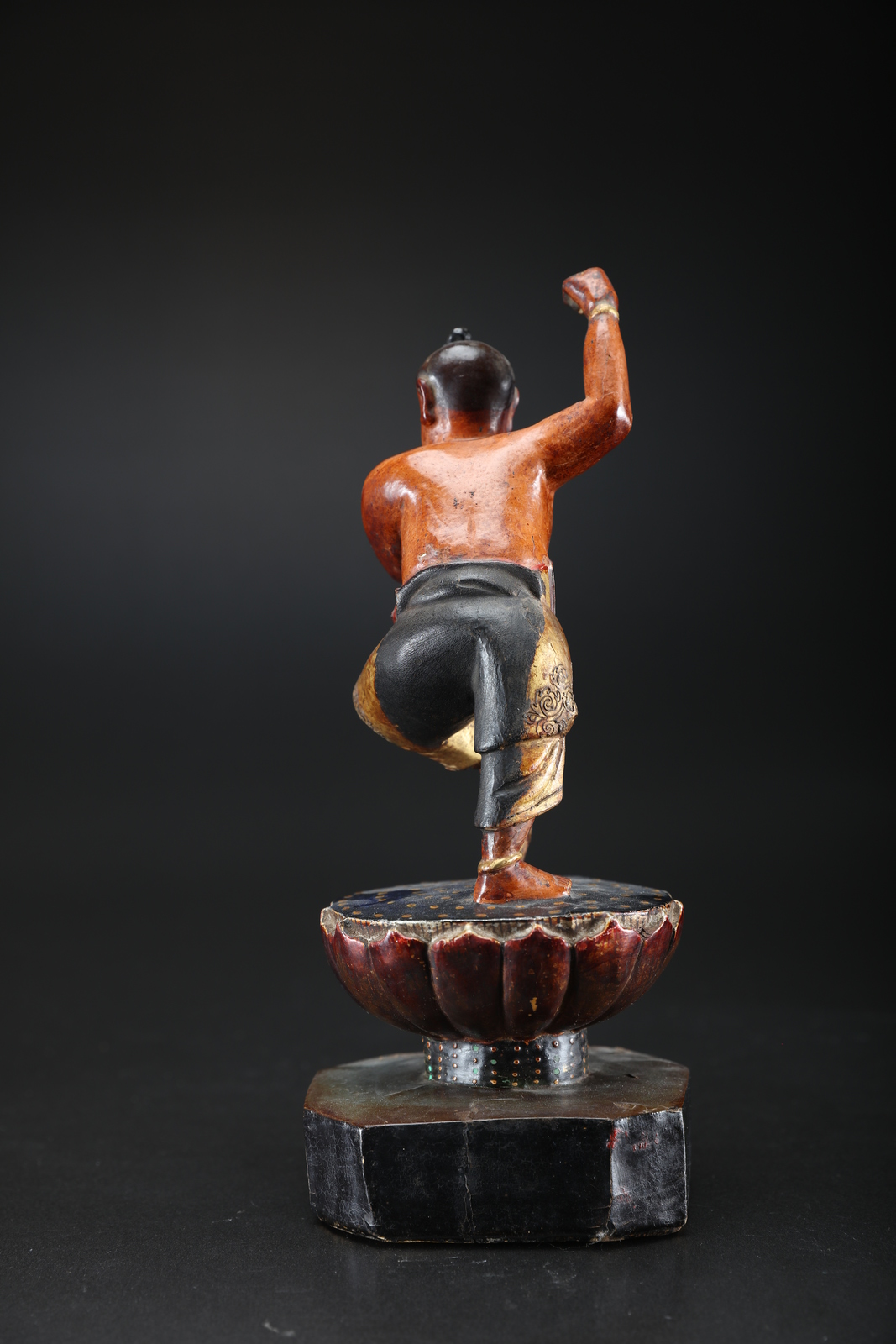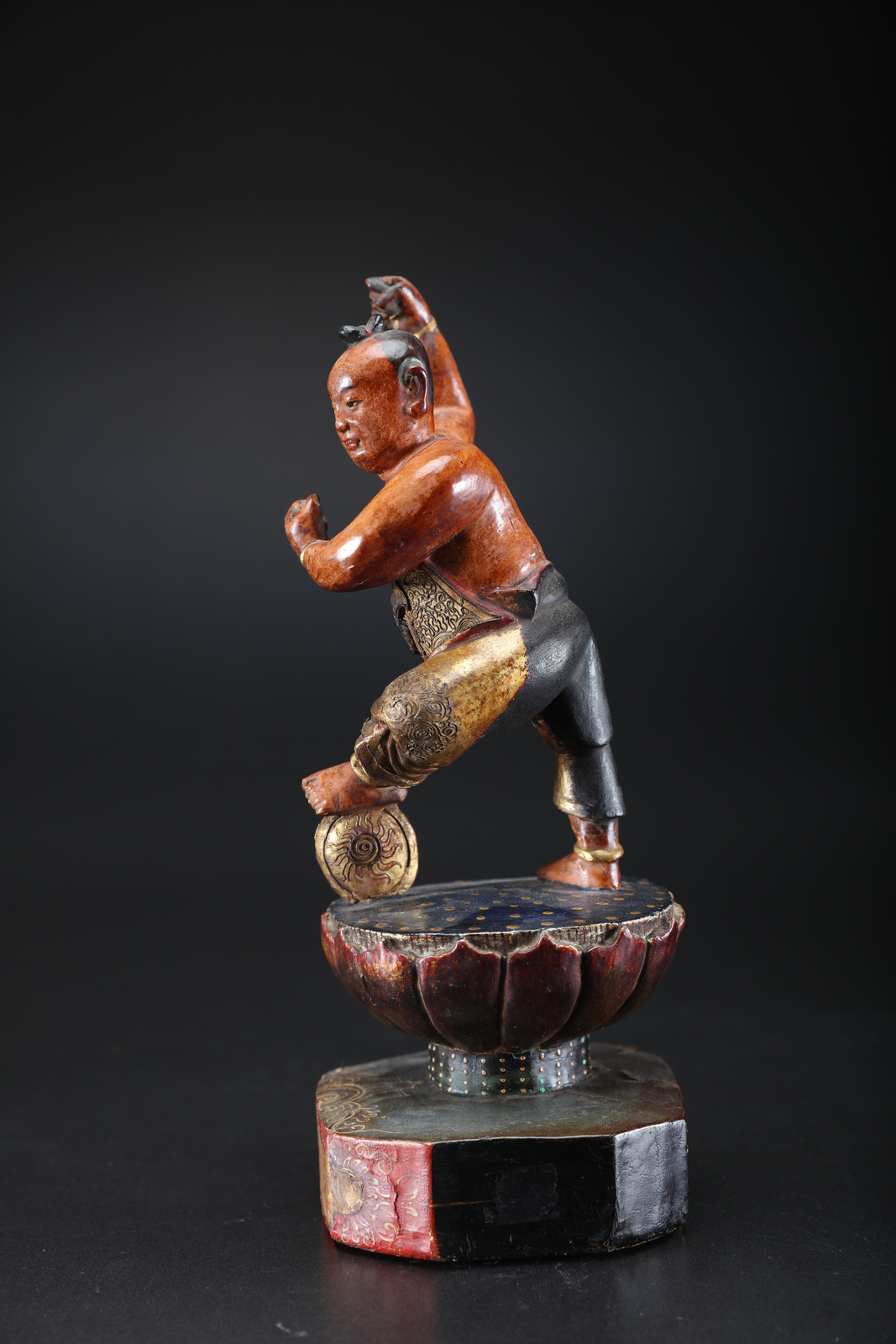 Arte Cinese A wooden lacquer statue depicting a warrior