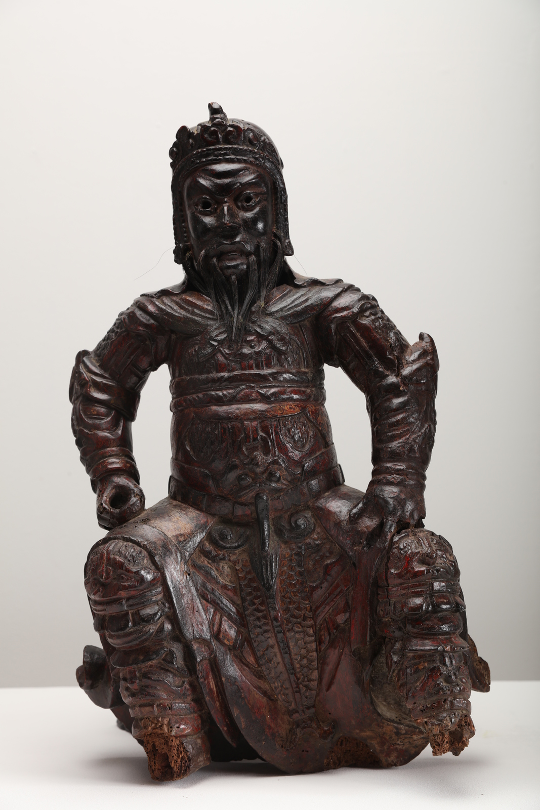 Arte Cinese A polycrhome wooden statue depicting Guandì or a warrior