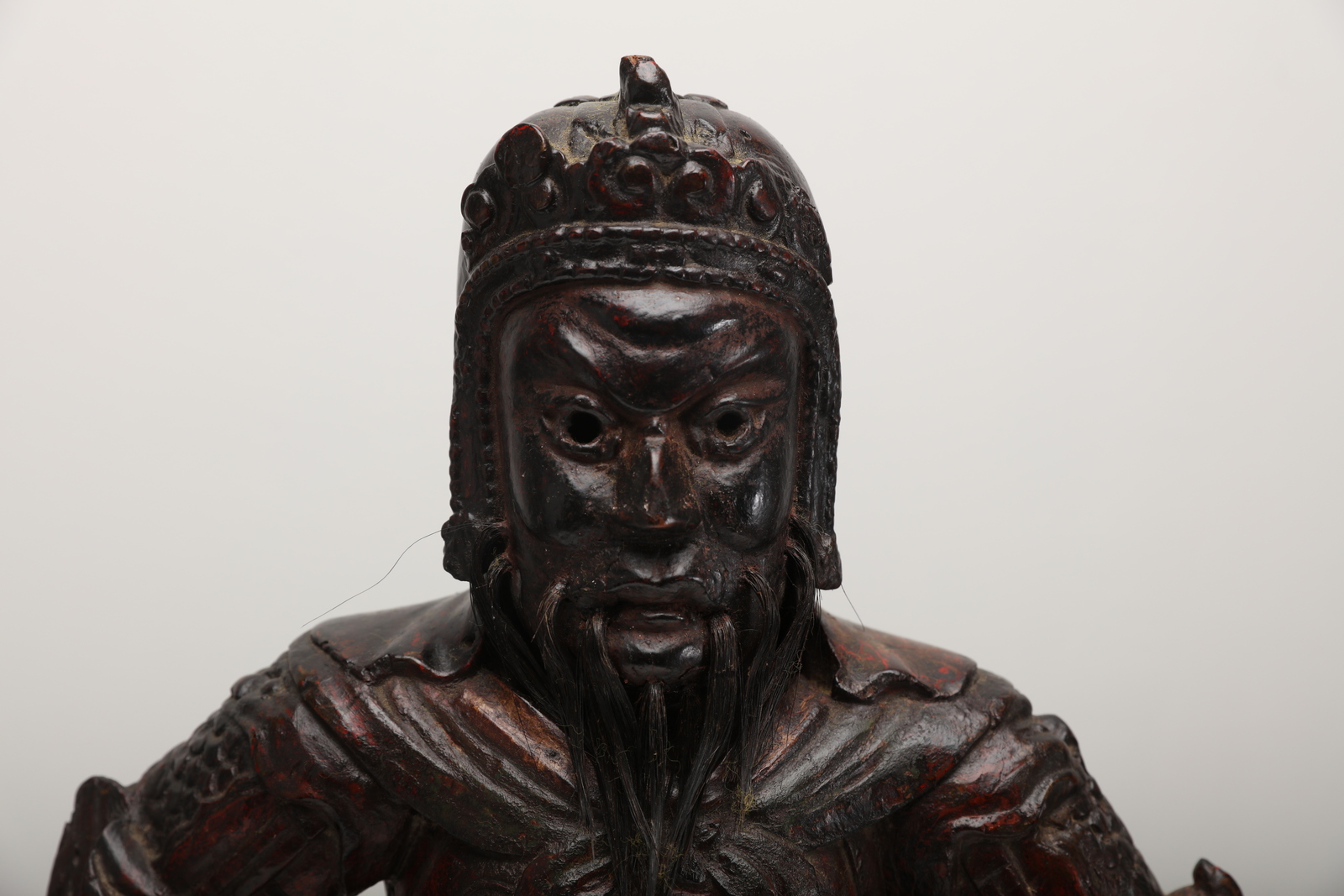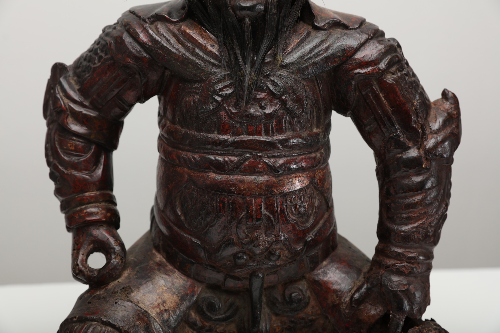 Arte Cinese Scultura in legno policromo raffigurante Guandì o un guerriero