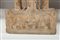 China, Qi dynasty, 5th - 6th century . . Cm 39,00 x 51,50 x 17,50. Sandstone sculpture, presumably portraying the future Buddha sitting in meditation on an altar depicting two lions facing each other, next to a fire, and two offerings bearing figures on the sides. The serene face of the character is enriched by a crown and encircled by a circular halo, and the whole scene is framed by two dragon flower trees characterized by dragons coiled around the trunks.