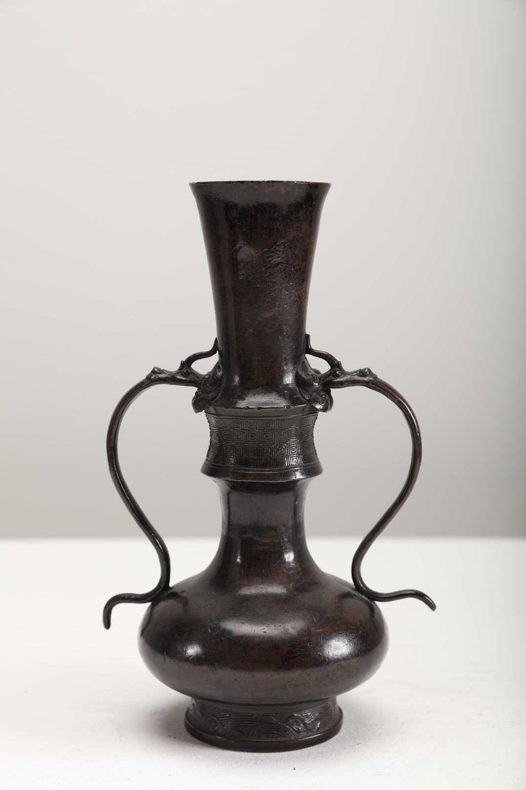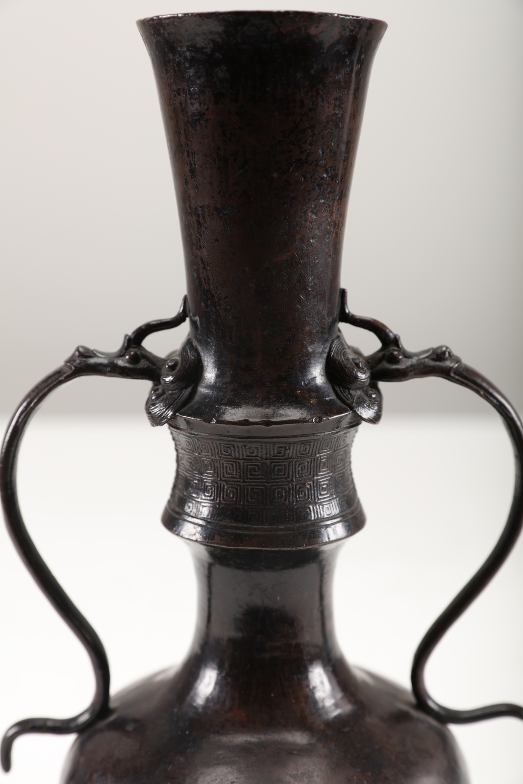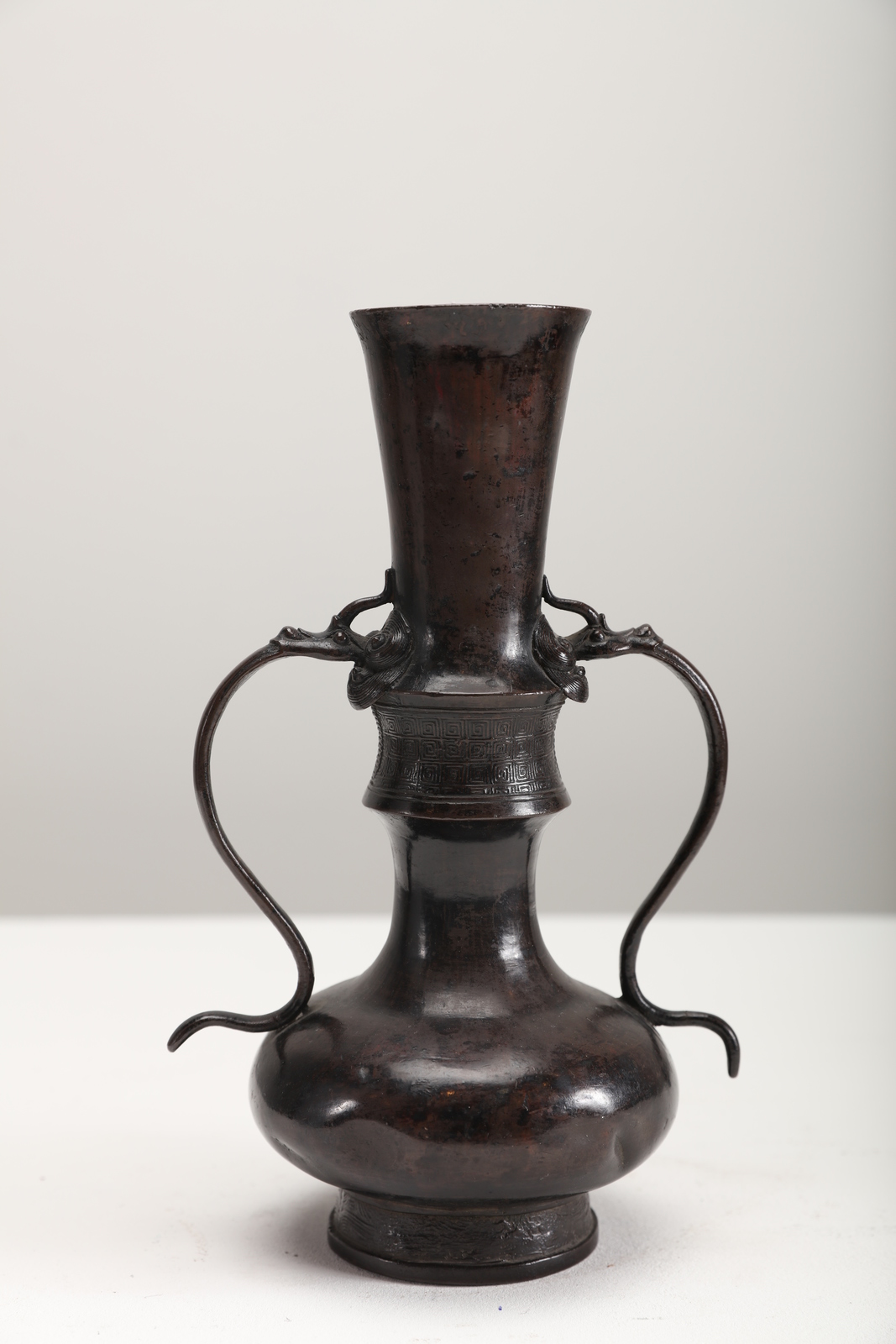 Lotto 187 | Arte Cinese Vaso in bronzo a patina scura con manici a forma di chilong Cina,...