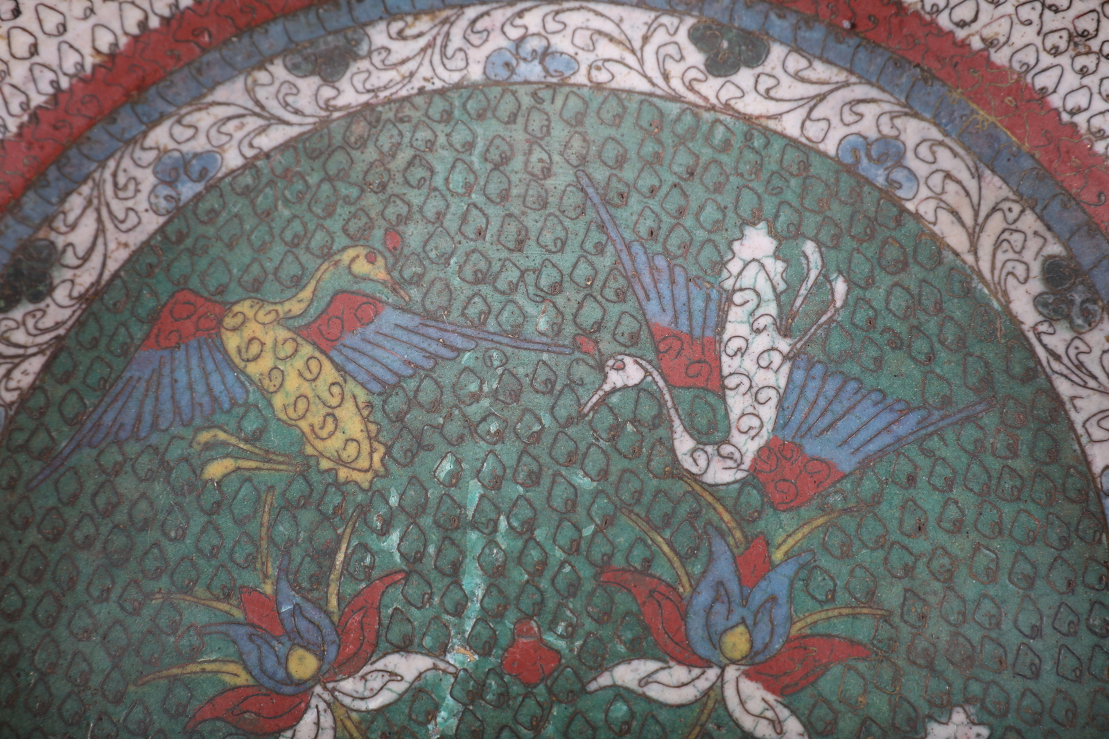 Arte Cinese Grande vassoio in metallo cloisonné decorato con fiori ed uccelli...