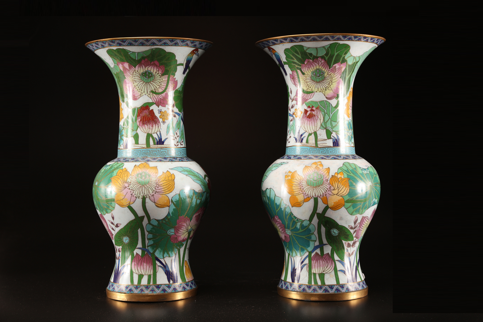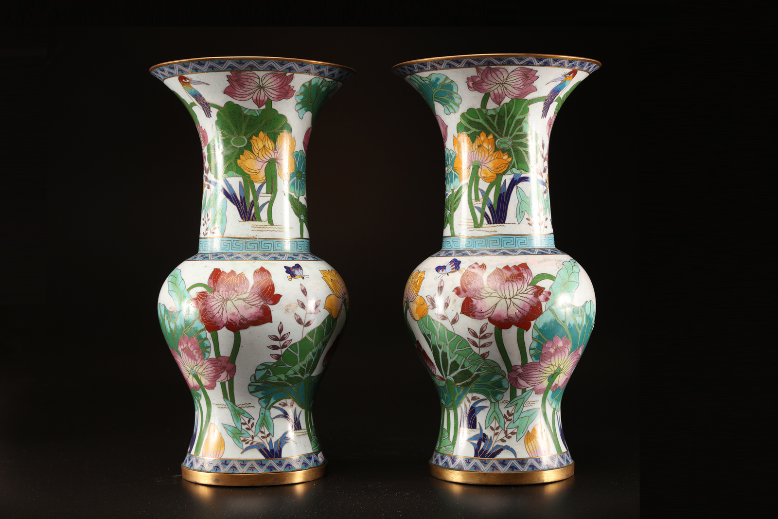 Arte Cinese A pair of cloisonné vases with floral decoration