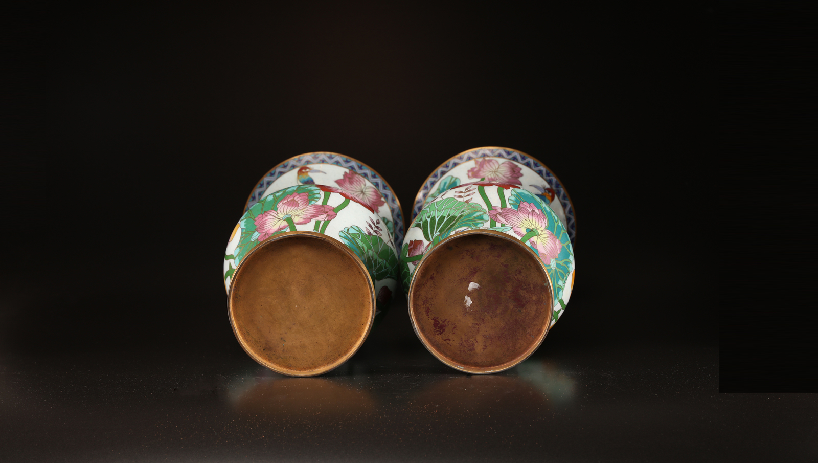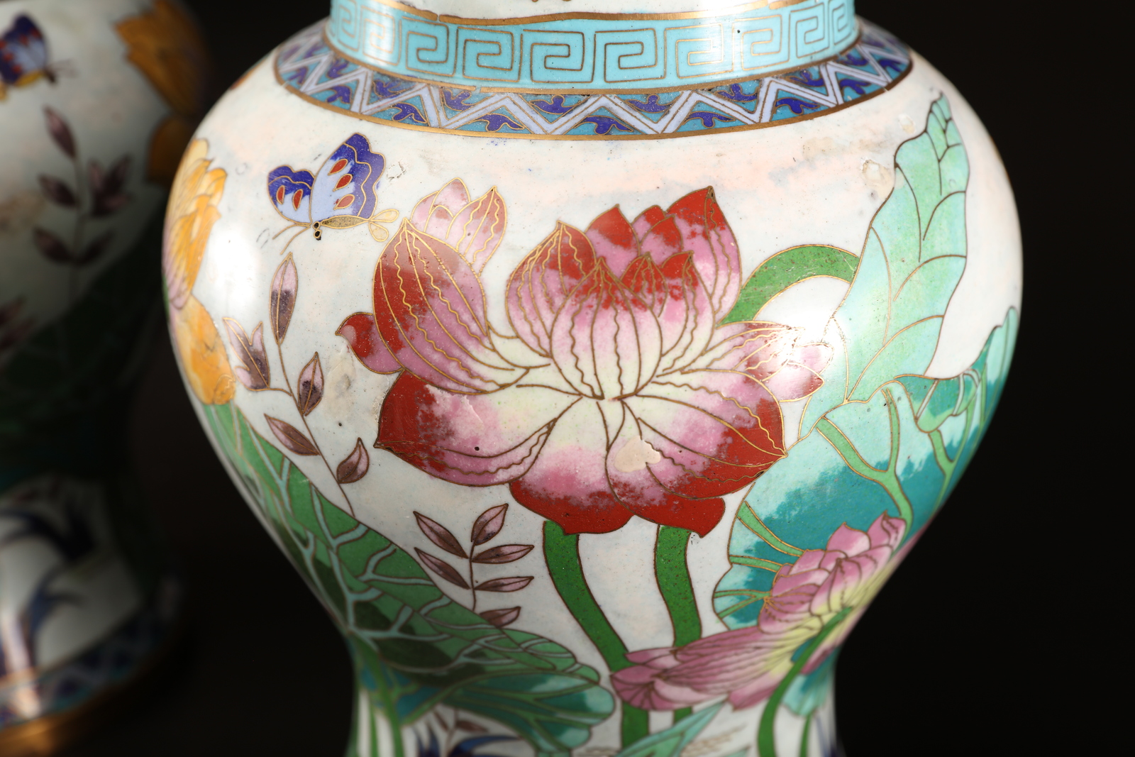 Arte Cinese Coppia di vasi cloisonné con decoro floreale