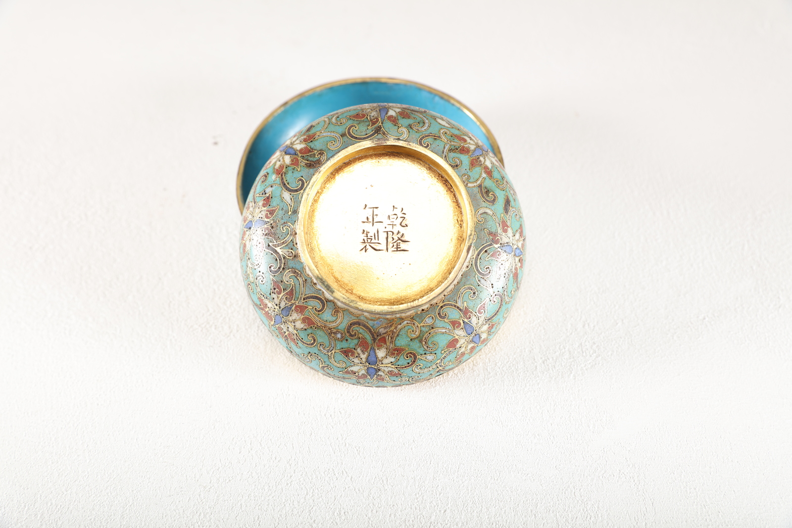 Arte Cinese A round metal cloisonné box and cover with incised four characters Qianlong mark at the base
