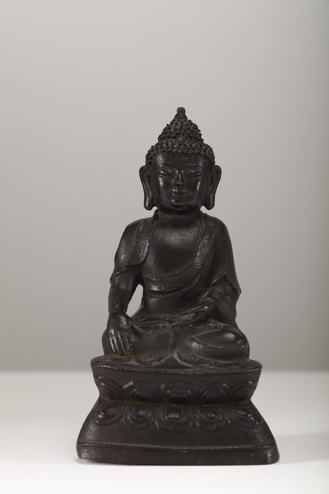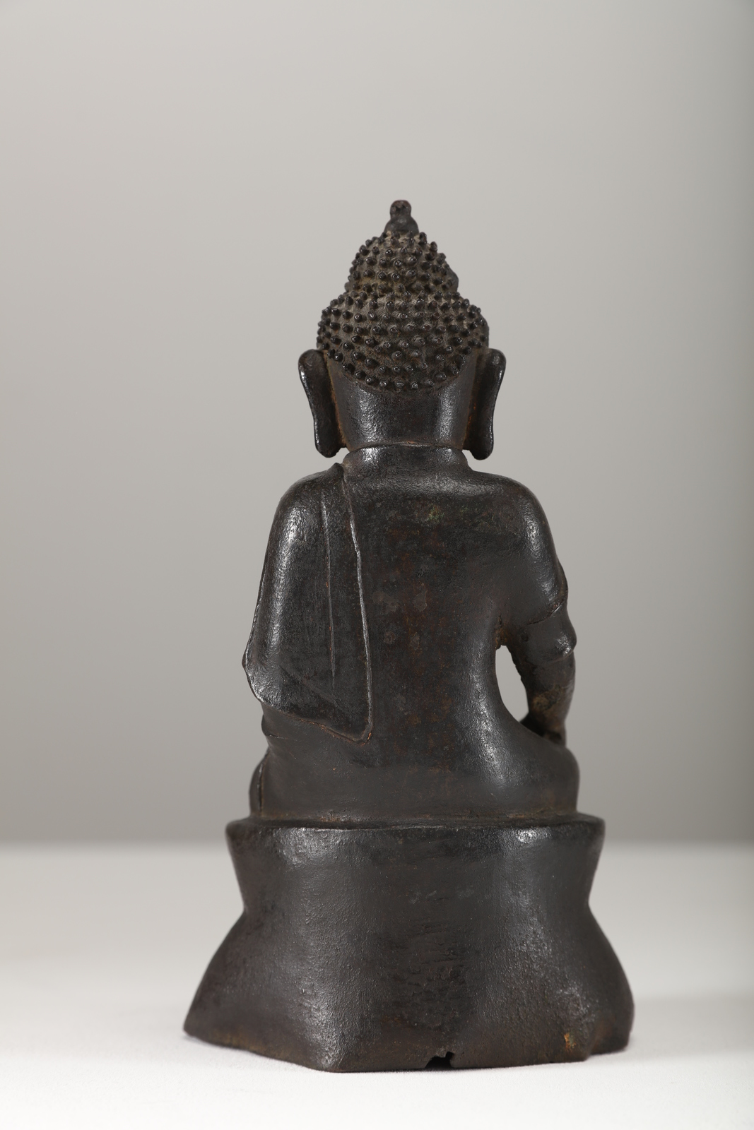 Arte Cinese A dark bronze statue portraying Buddha Sakyamuni
