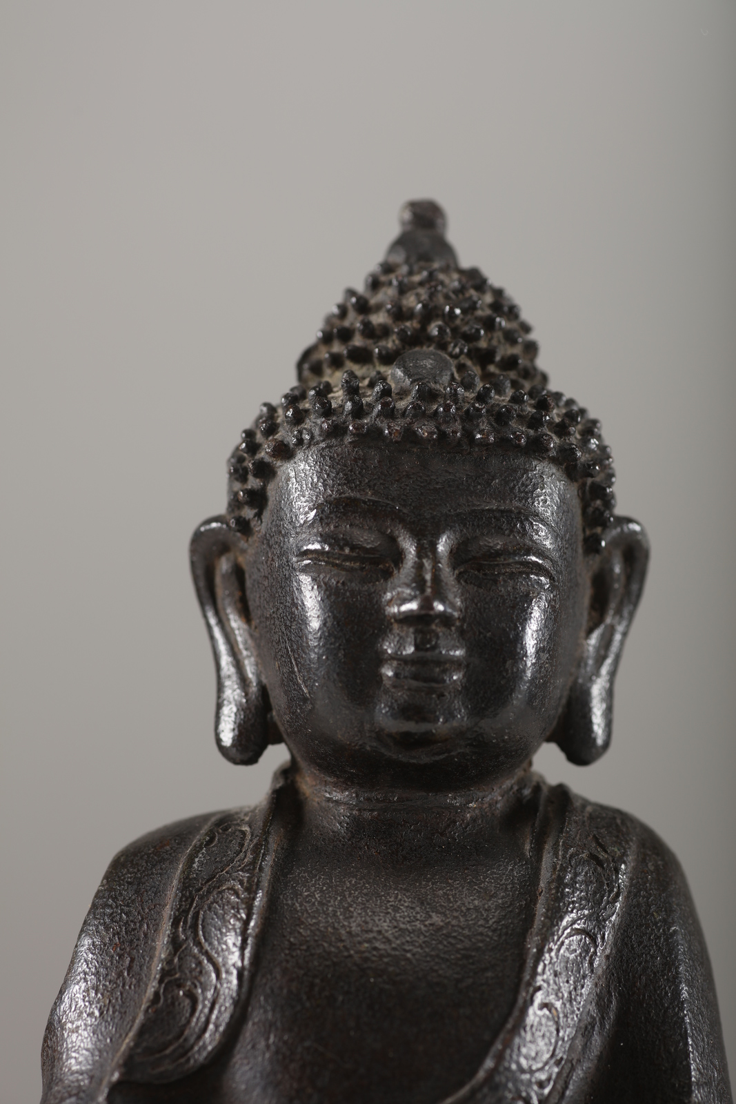 Arte Cinese Scultura in bronzo a patina scura raffigurante Buddha Sakyamuni...