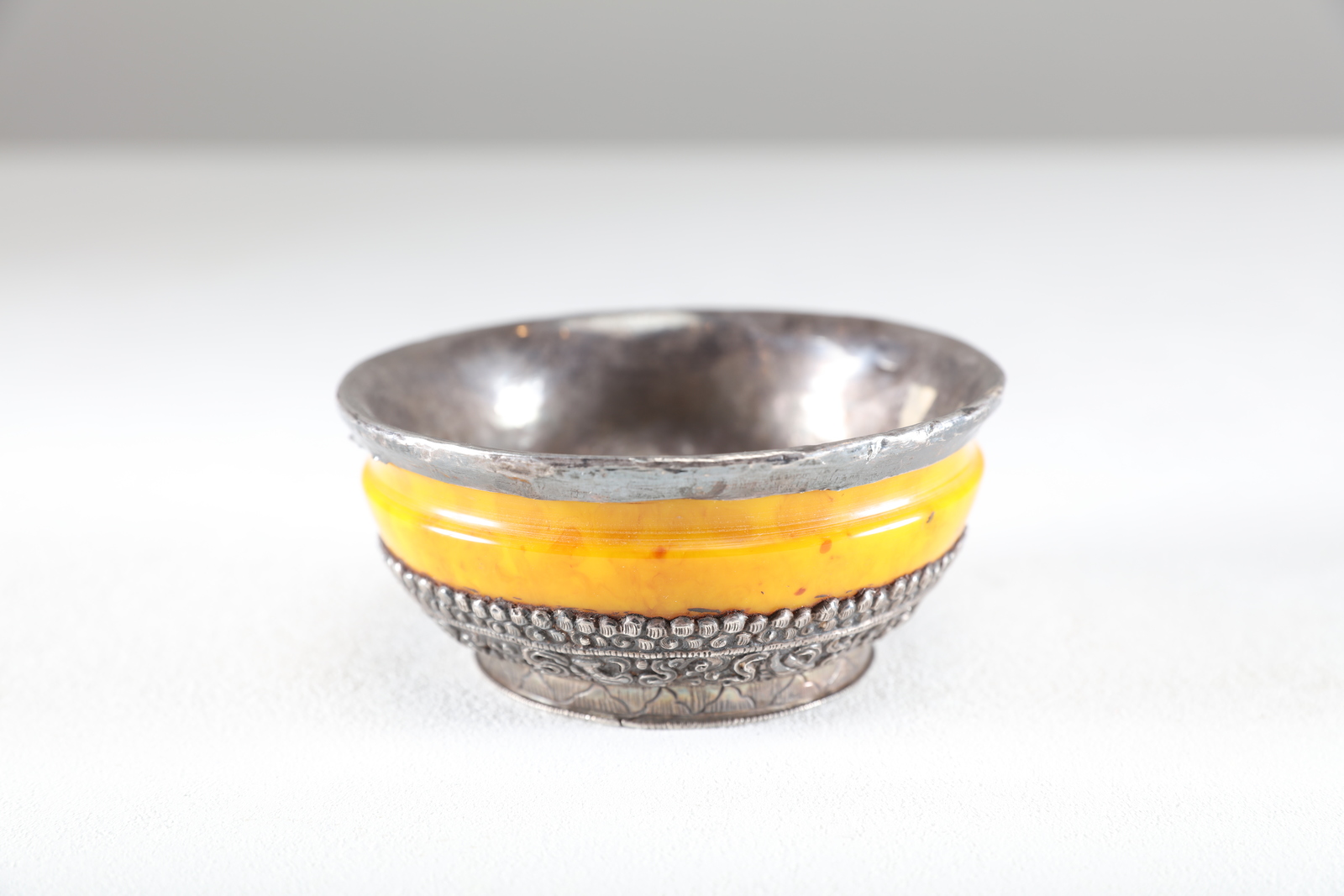Arte Cinese An amber cup mounted with repoussé silver base and inside walls