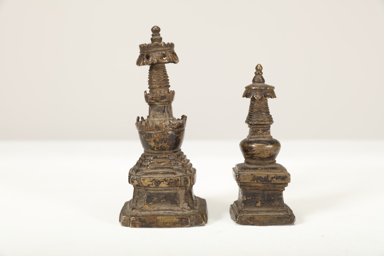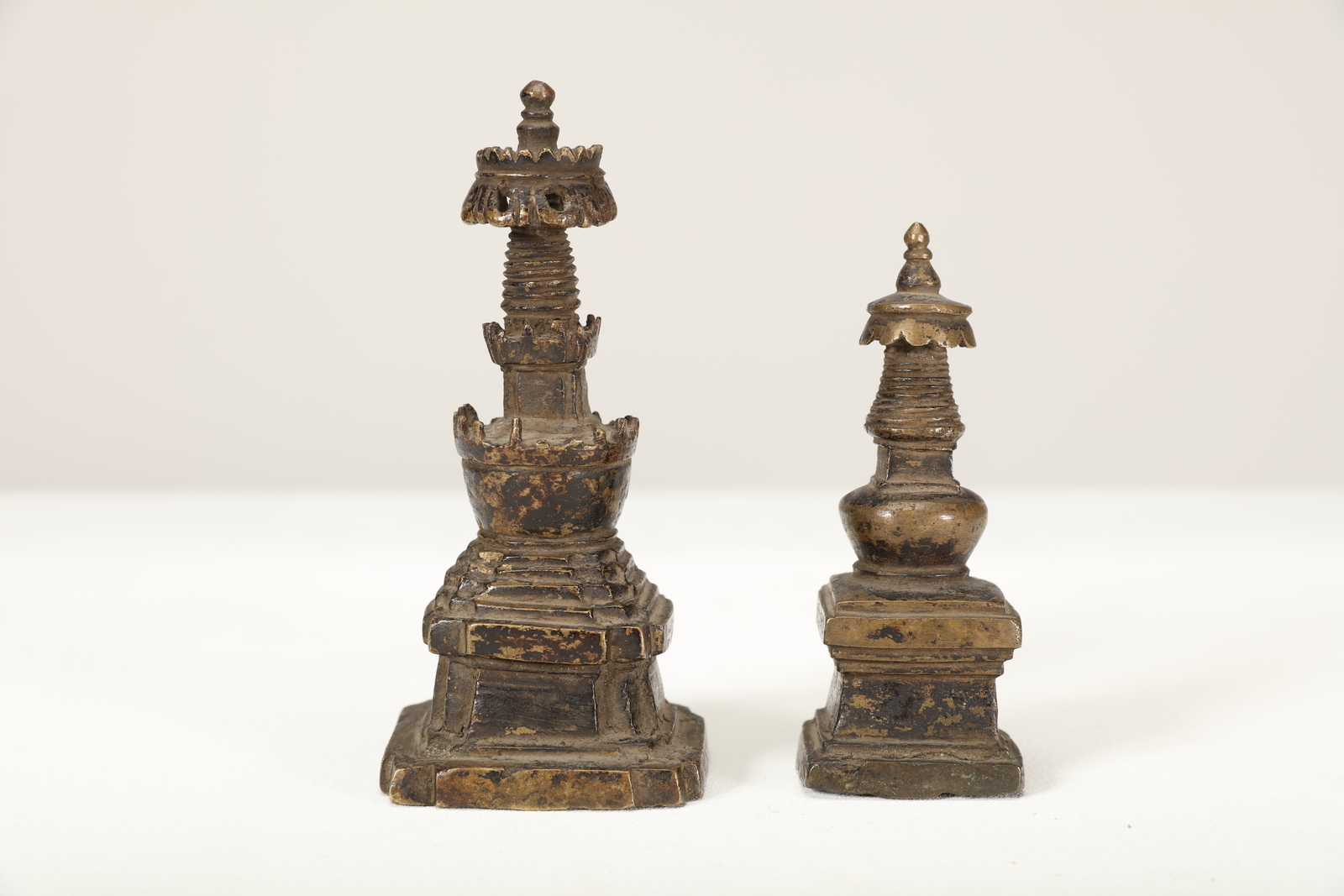 Arte Himalayana Due piccole stupa arcaiche in bronzo