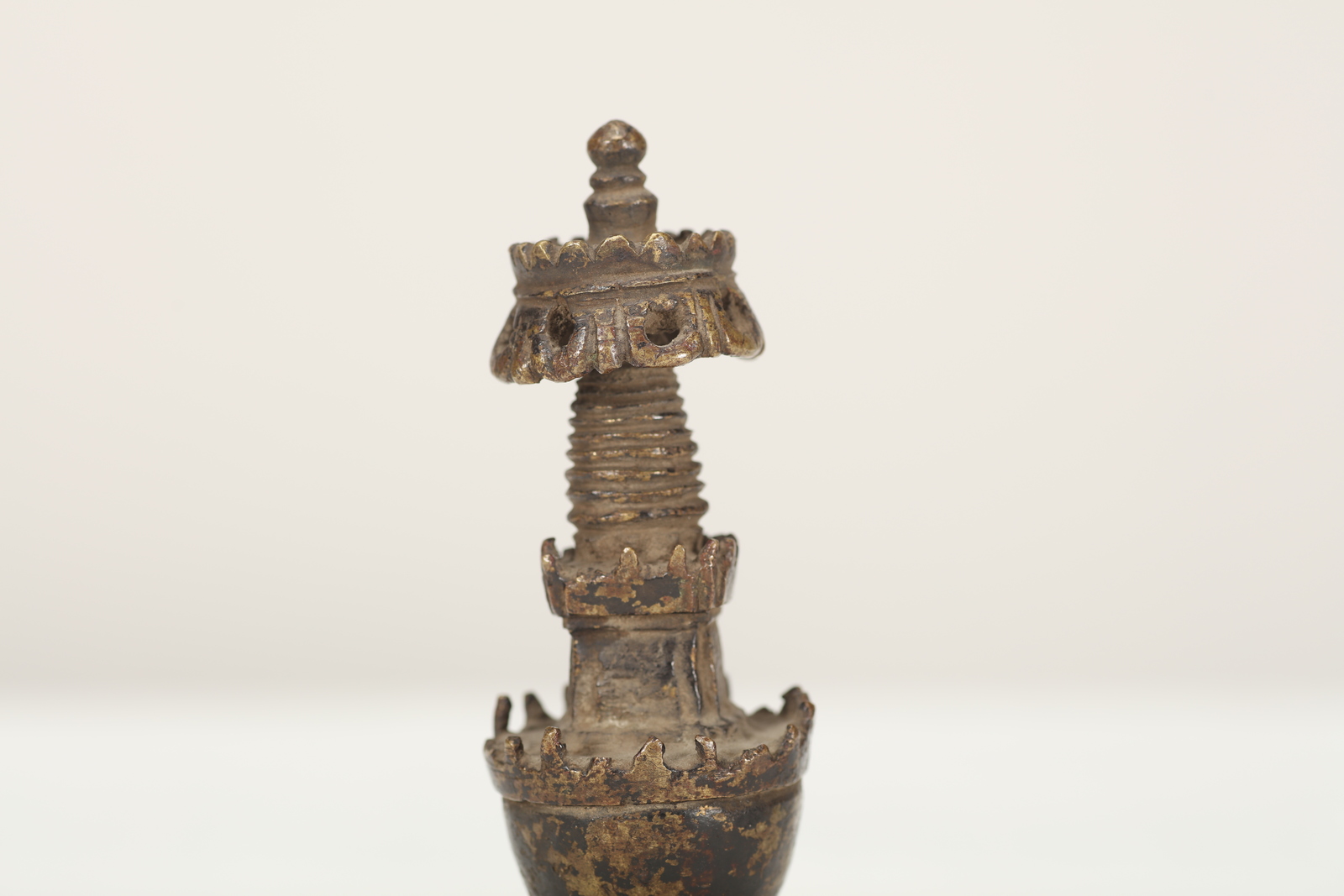Arte Himalayana Due piccole stupa arcaiche in bronzo Tibet, XIV-XV secolo o...