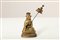 Cino-Tibet, XVIII-XIX secolo. -. Cm 18,00. Fusione in bronzo raffigurante il personaggio seduto in padmasana su una base a doppio fiore di loto. La figura è caratterizzata dai suoi attributi: il vajra e la kapala, rispettivamente nella sua mano destra e nella sinistra. Un parasole estraibile sostituisce l'attributo originario, probabilmente la khatvanga.
