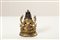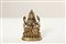 Cino-Tibet, XIX secolo. -. Cm 8,50 x 14,20. Statua in bronzo dorato raffigurante il bodhisattva assiso in padmasana su una base a doppio fiore di loto, le due mani principali giunte al petto in manidharamudra, mentre le secondarie reggono un fiore di loto ed un mala. La figura è adornata con la gioielleria tipica del suo rango e con la corona a cinque punte al cui apice è presente una piccola rappresentazione del Buddha Trascendente Amitabha.