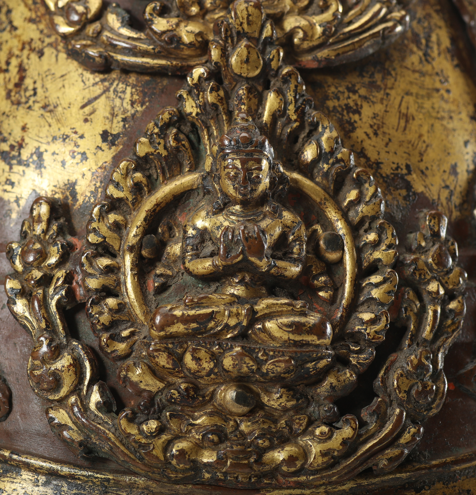 Arte Himalayana Corona rituale in rame sbalzato e dorato Nepal, XVI secolo....