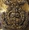 Nepal, XVI secolo. -. Cm 18,00 x 24,50. Rara corona rituale, detta anche corona del vajra, usata dai religiosi vajracharya. Presenta un corpo in rame con tracce di doratura e cesellature su cui sono applicate placche finemente lavorate a sbalzo. Sono rappresentati i cinque Buddha Trascendenti, ognuno dei quali arricchito da aureole. Nella parte frontale si possono distinguere Vairocana e Amoghasiddhi, mentre a sinistra è raffigurato Akshobhya e a destra Ratnasambhava. Sul retro è ritratto Amitabha, caratterizzato dall'aureola a fondo rossastro. Sulla superficie della corona sono inoltre applicati due Makara, due Kinnara ad ali spiegate, gioielli e decori fitomorfi. A conclusione il finale a mezzo Vajra.