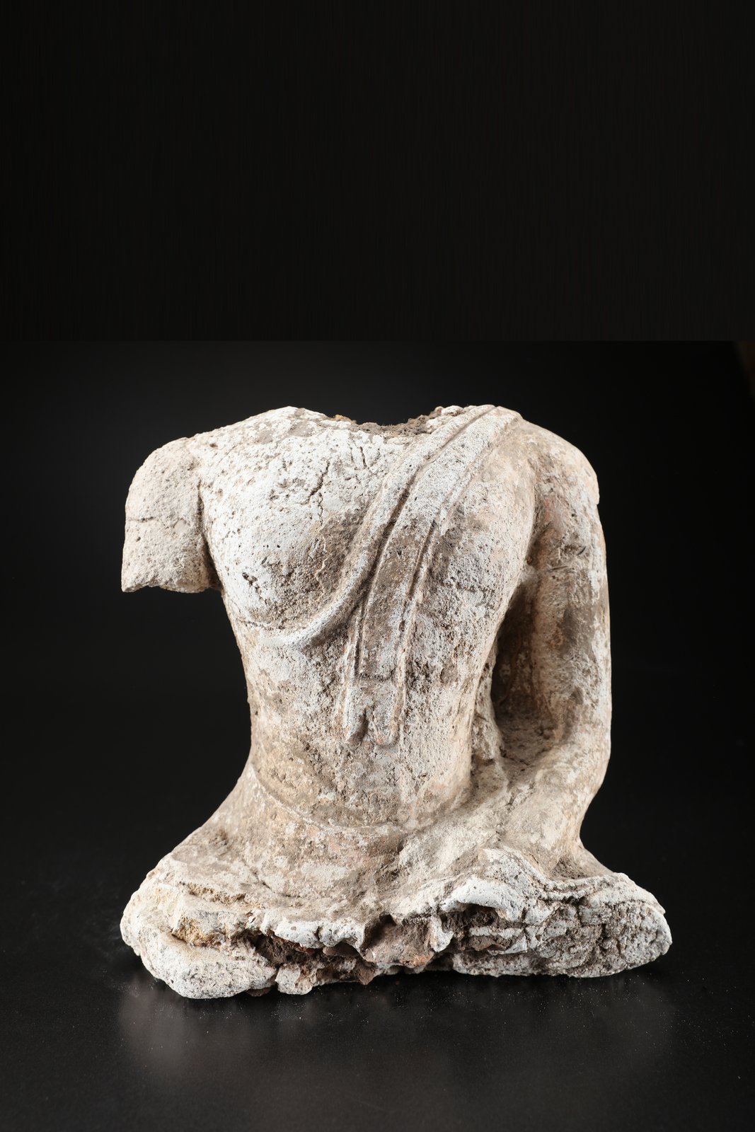 Arte Sud-Est Asiatico A plaster torso of Buddha Sakyamuni with polychrome traces